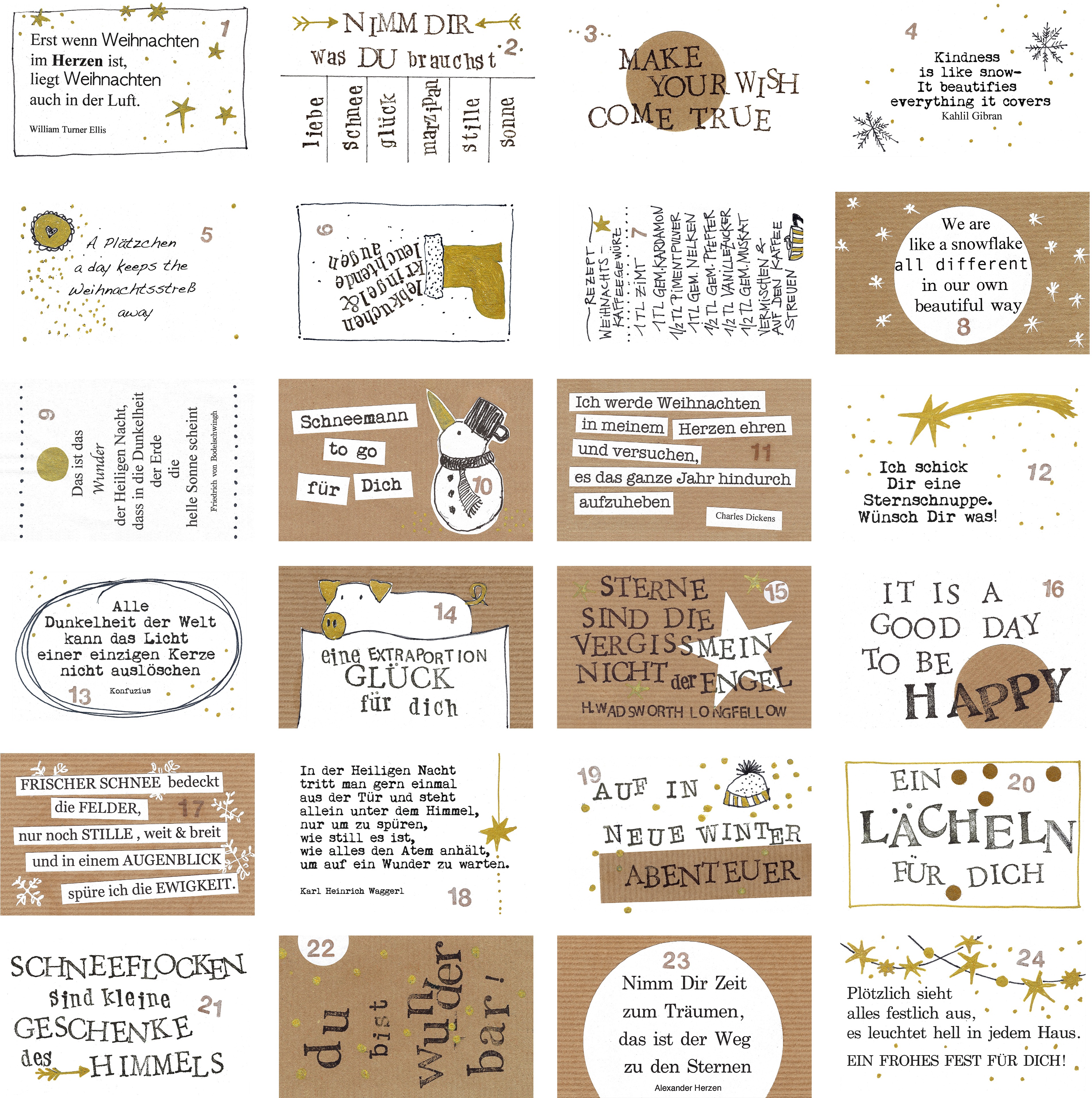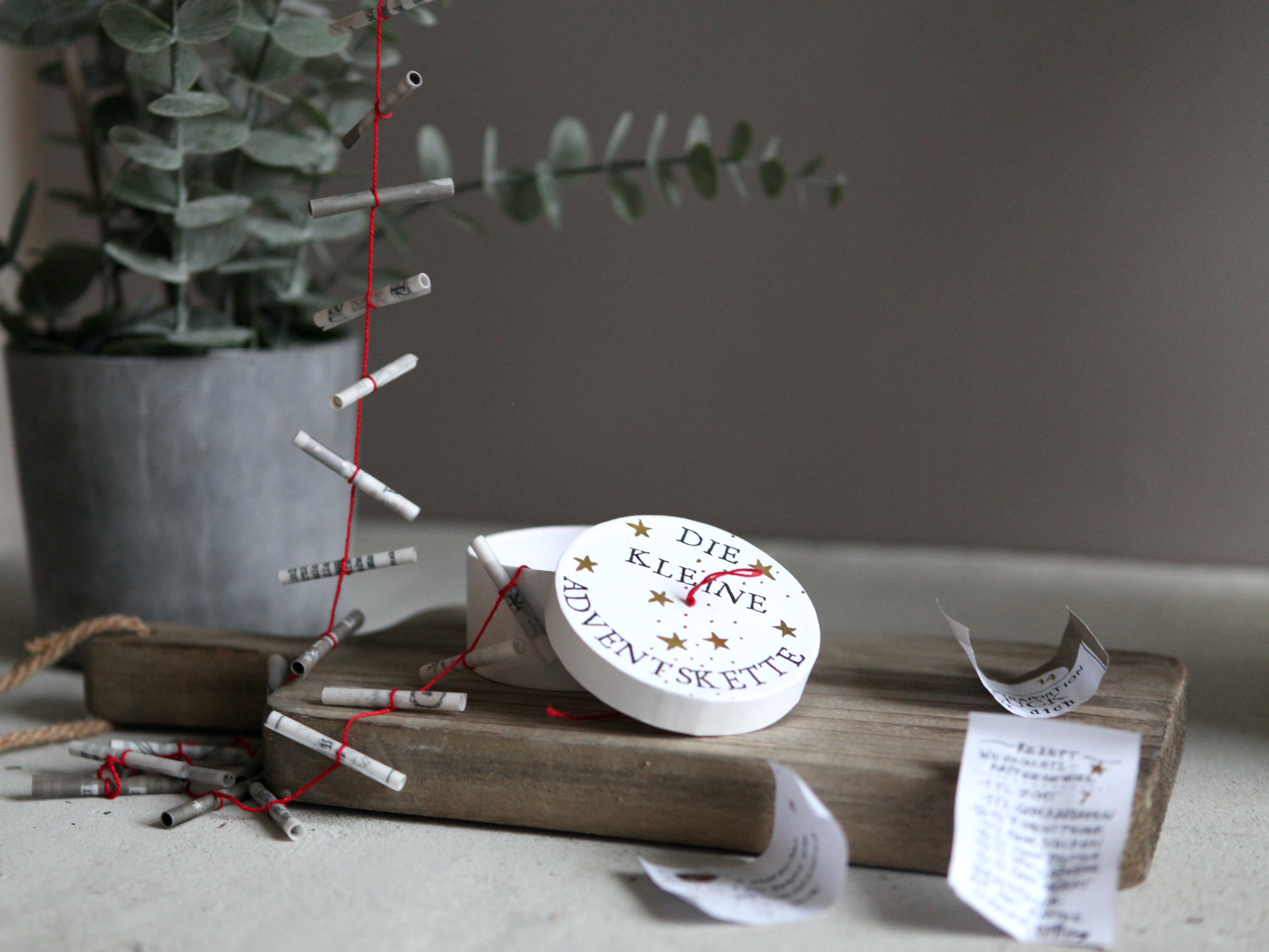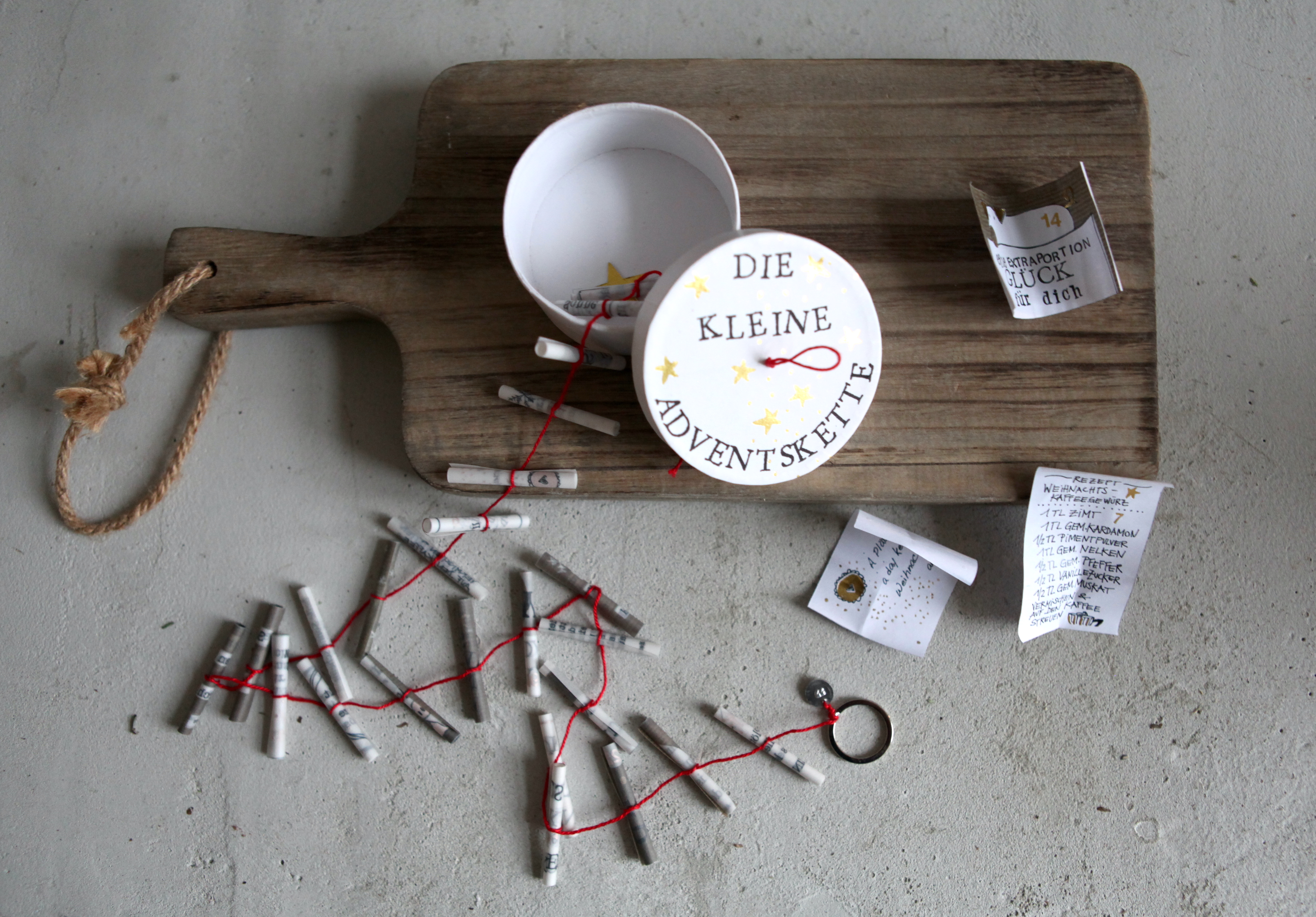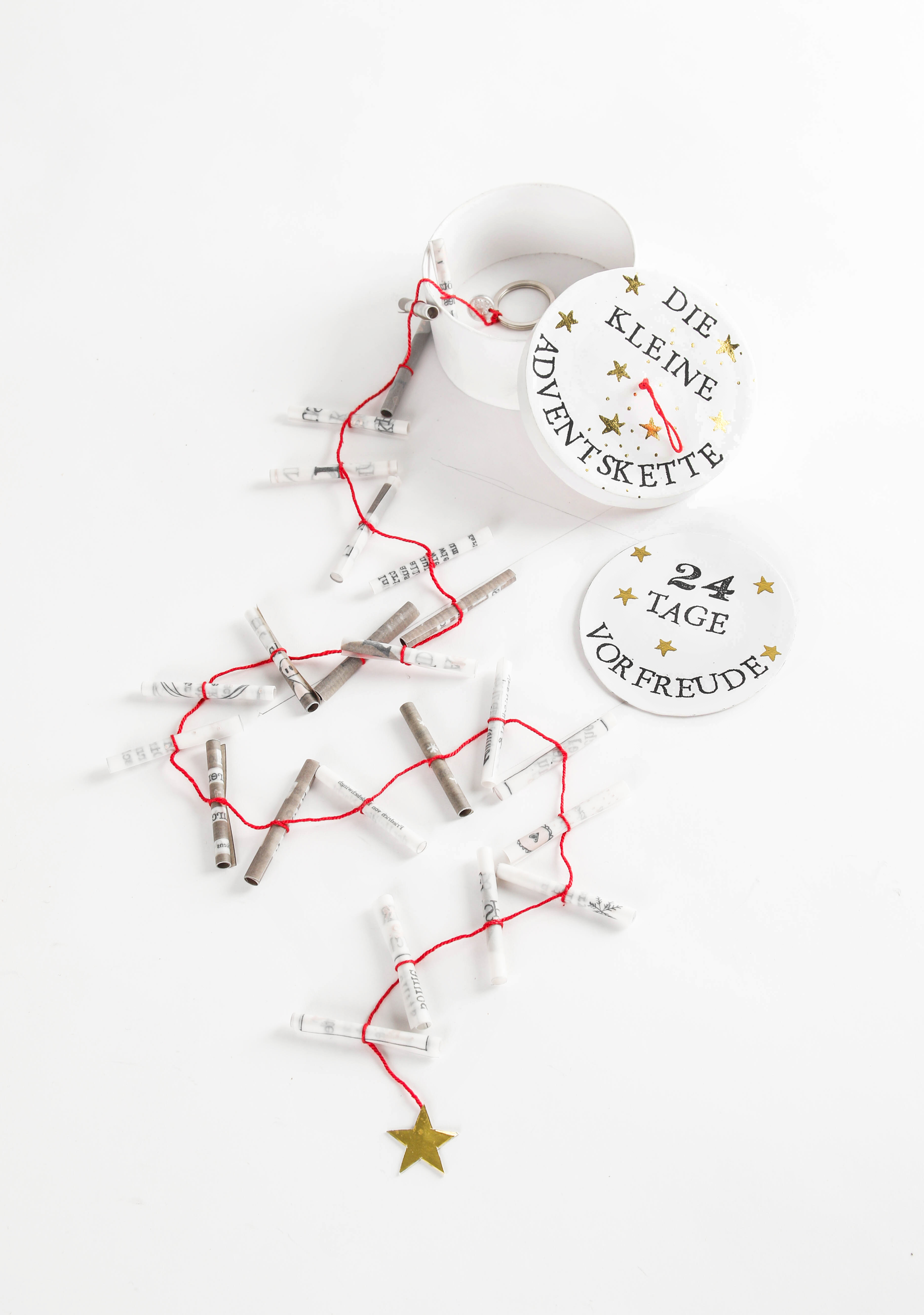 - Material: Kordel mit 24 verschiedenen Sprüchen und Wünschen aus Papier