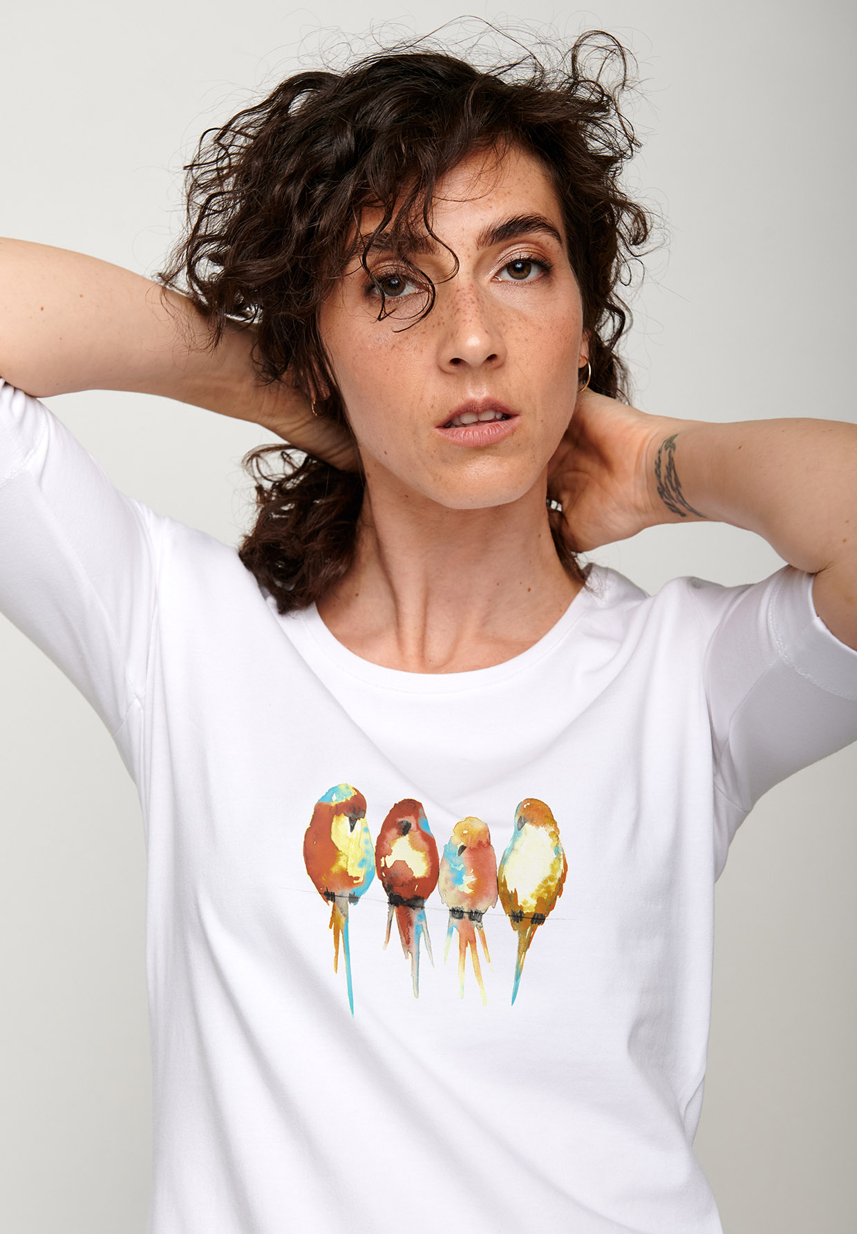 Das Shirt 'Deep' mit 3/4 Ärmeln besteht aus 95% Bio-Baumwolle und 5% Elasthan. Es ist schmal geschnitten und hat einen schönen Rundhalsausschnitt.