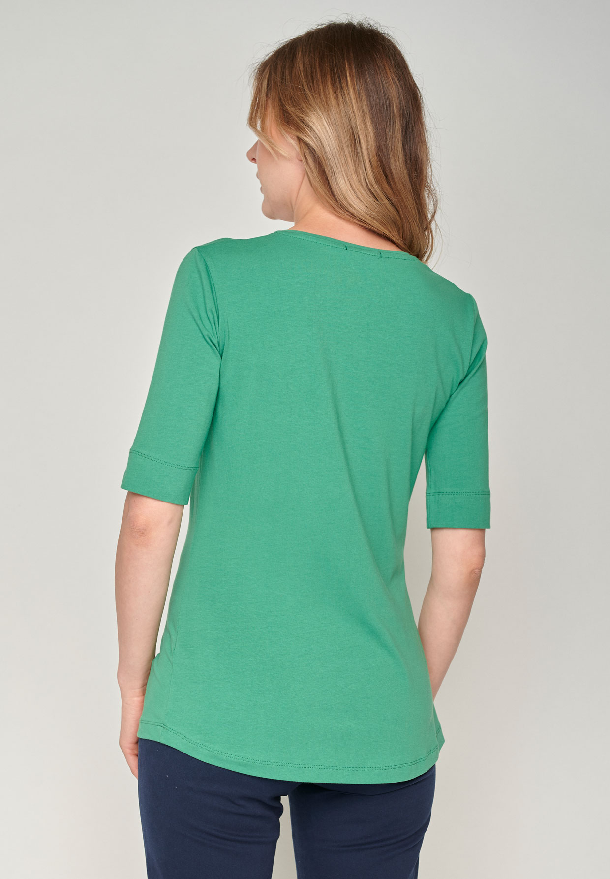 Das Shirt 'Deep' mit 3/4 Ärmeln besteht aus 95% Bio-Baumwolle und 5% Elasthan. Es ist schmal geschnitten und hat einen schönen Rundhalsausschnitt.