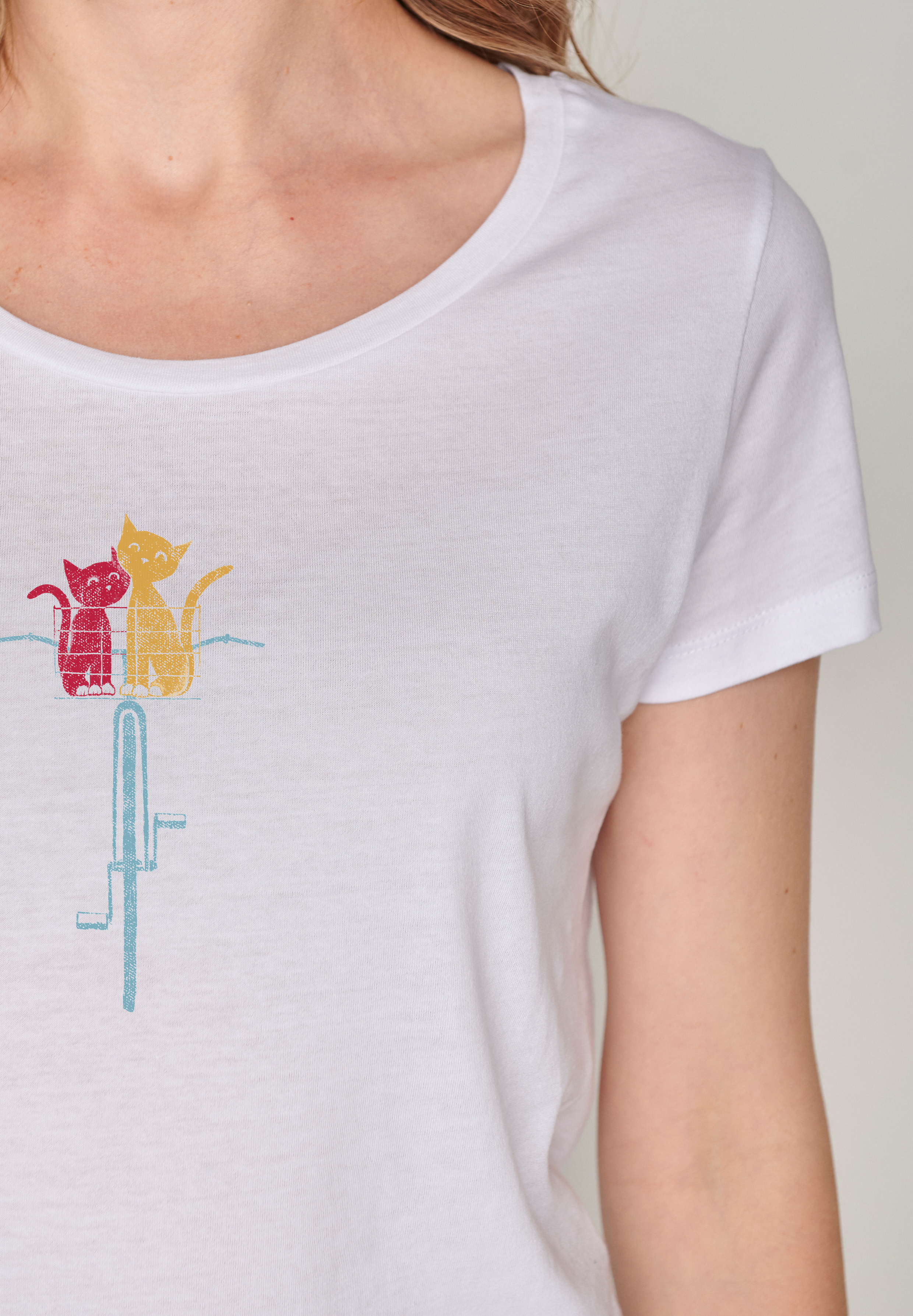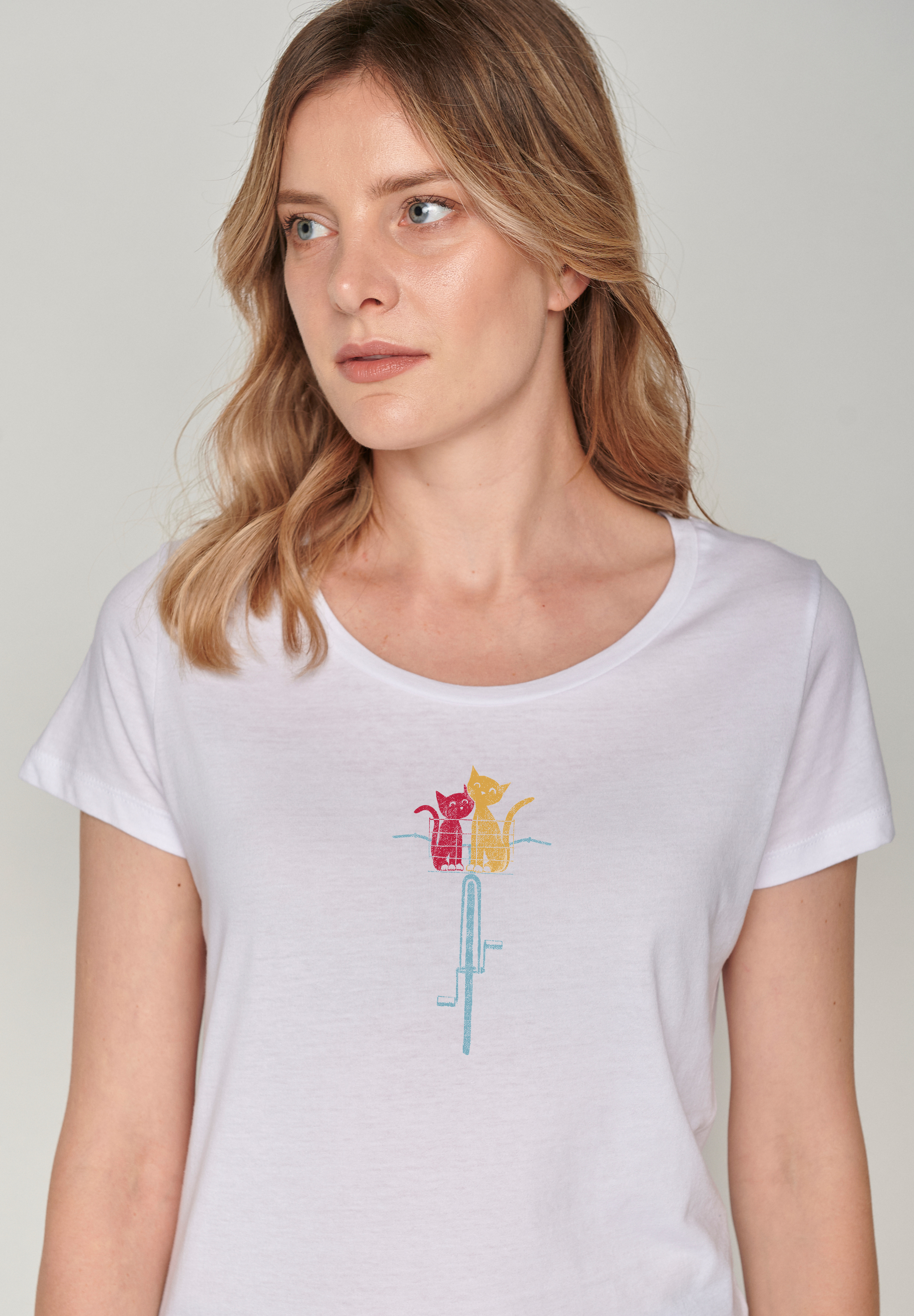 Das T-Shirt aus der Serie 'Loves' besteht aus 100% Bio-Baumwolle. Das Loves hat kurze Ärmel und ist feminin und schmal geschnitten.