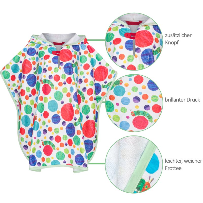Ein brillanter Druck überzeugt mit strahlenden Farben. Der neu entwickelte Frottee macht den Badeponcho durch den Anteil an nachhaltigem Bambus federleicht. Bambus ist sehr saugstark und hat eine einzigartige antibakterielle Wirkung, die Bakterien den Kampf ansagt. Daher eignet sich Bambus insbesondere auch für sensible Kinderhaut.