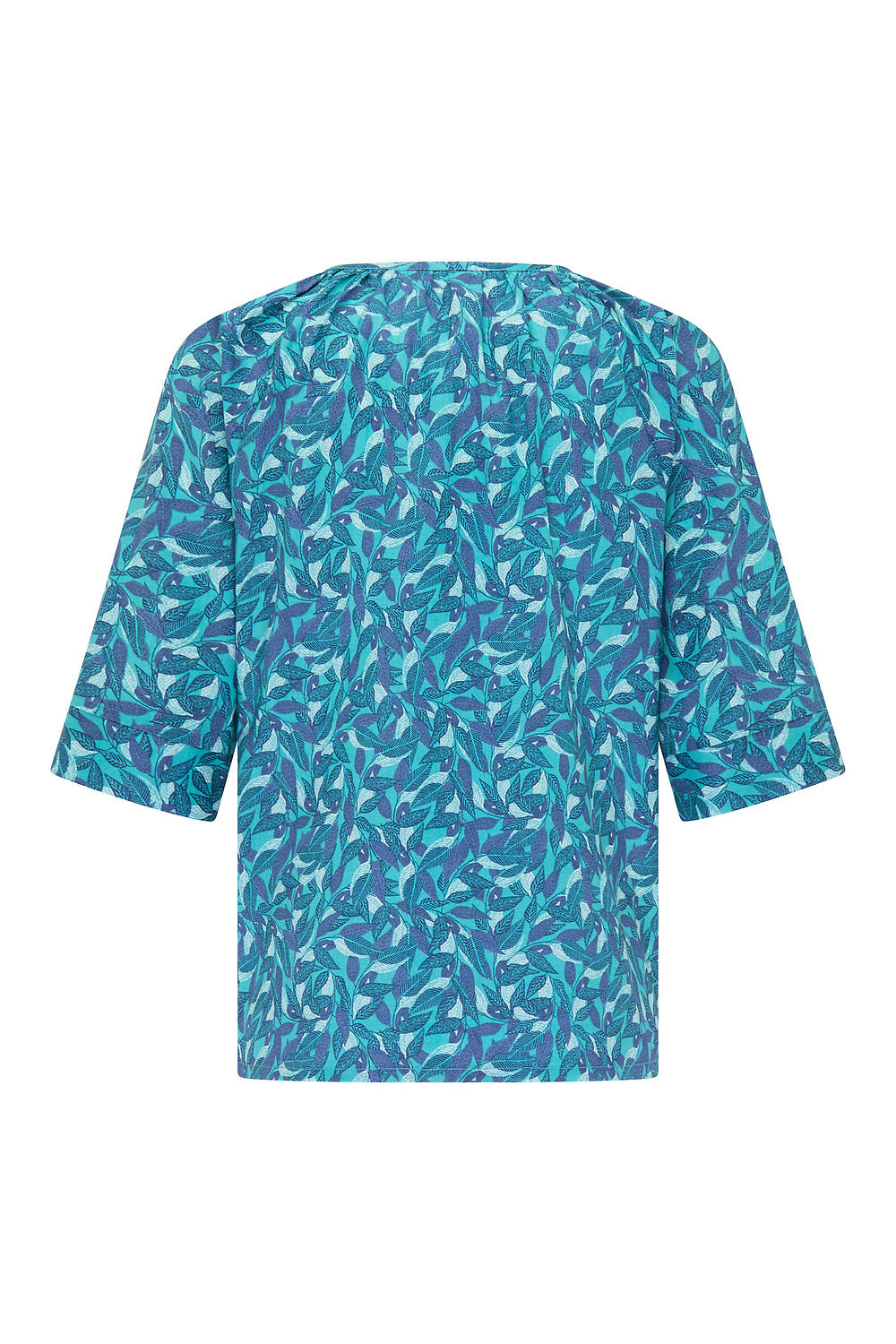 Der in Falten gelegte Rundhalsausschnitt und das tolle Muster kommen in Kombination mit einer Jeans oder einem Rock besonders gut zur Geltung. Mit ihrem luftigen Schnitt geht es bequemen durch den Alltag.