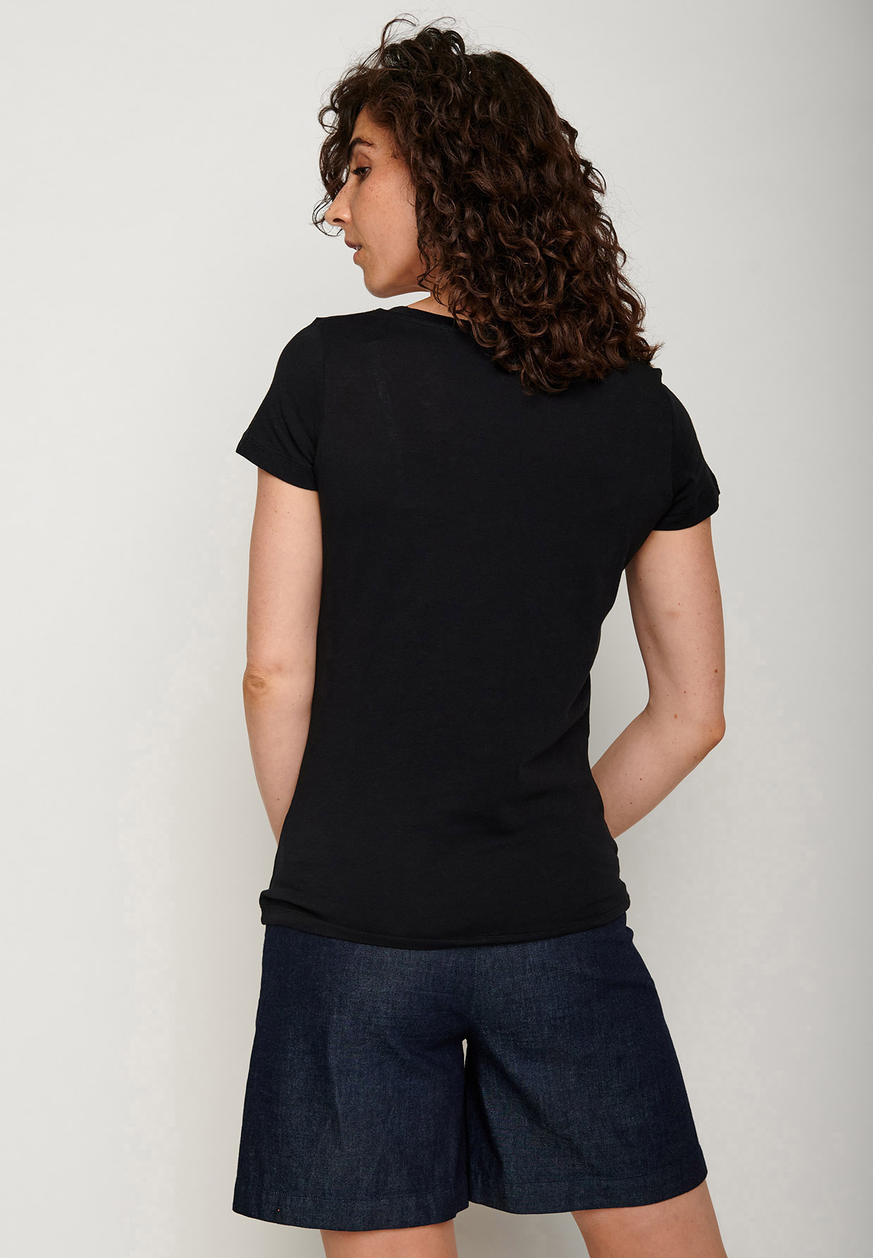 Das T-Shirt aus der Serie 'Loves' besteht aus 100% Bio-Baumwolle. Das Loves hat kurze Ärmel und ist feminin und schmal geschnitten.