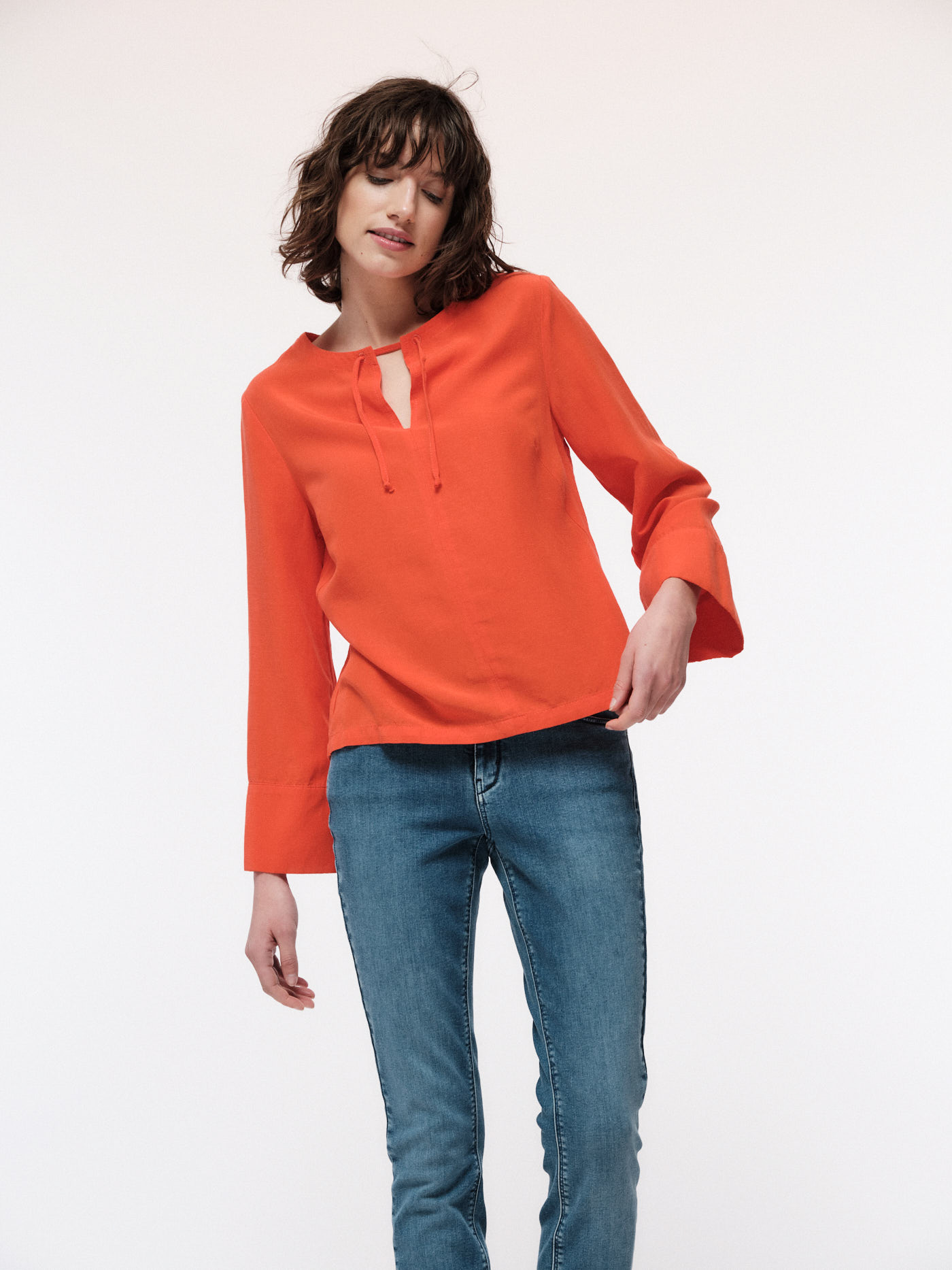 Mobile Preview: Bluse mit Bindedetail aus TENCEL™ mit Leinen -  mango