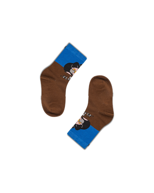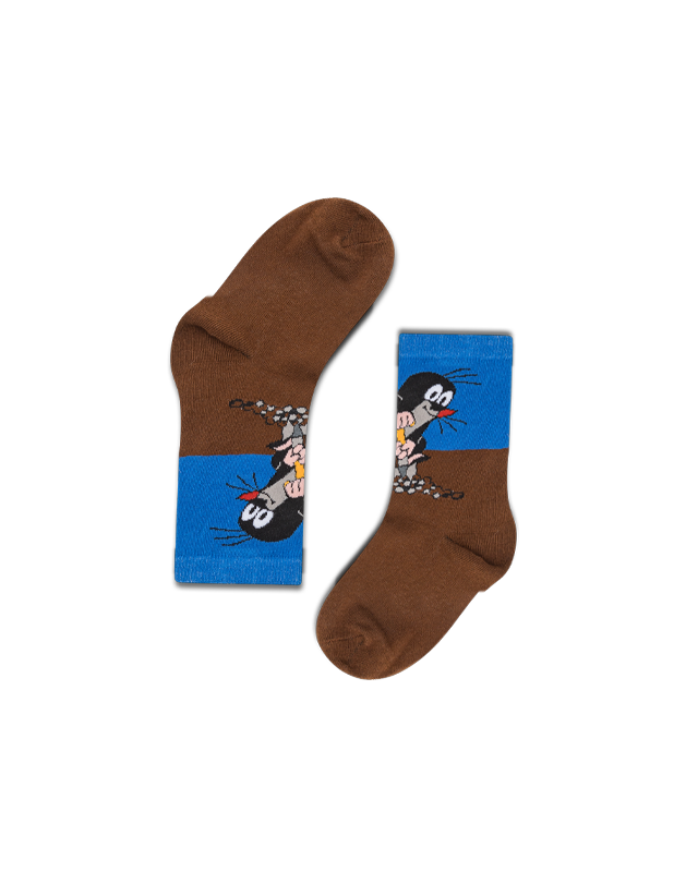 Die kleine Maulwurf "Am Grabe"" Socken in verschiedenen eingewebten Farben zeigen den Maulwurf beim Graben.