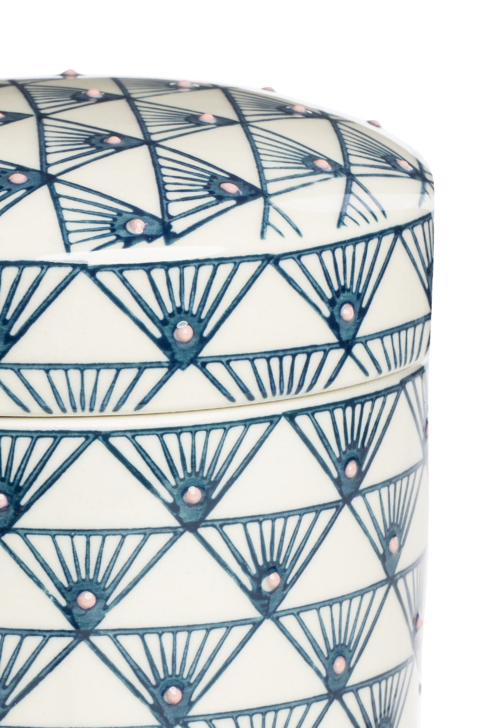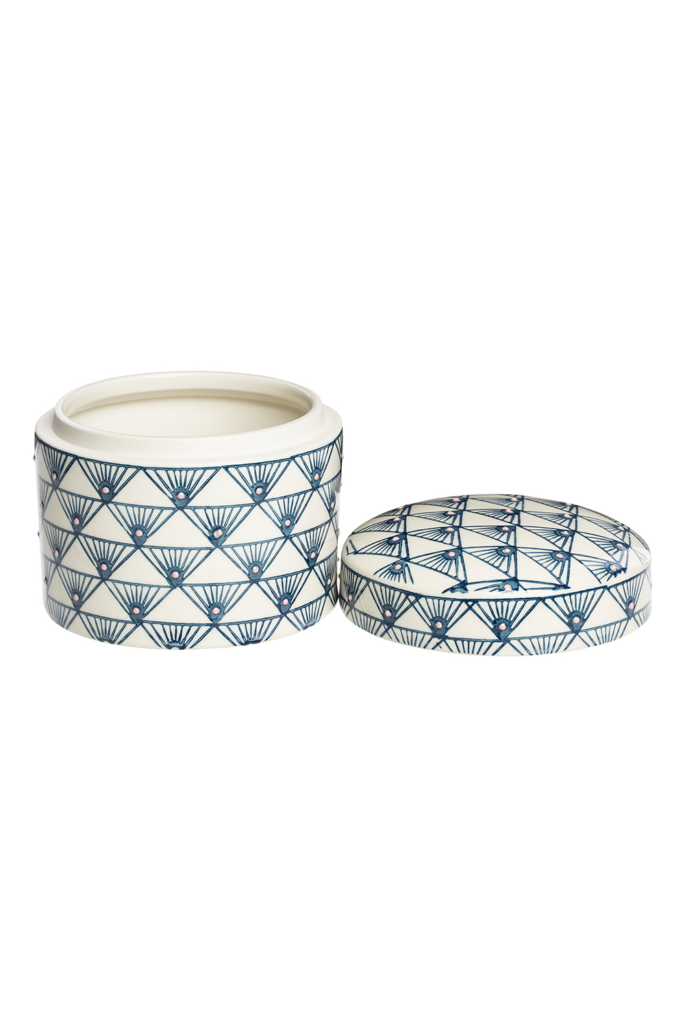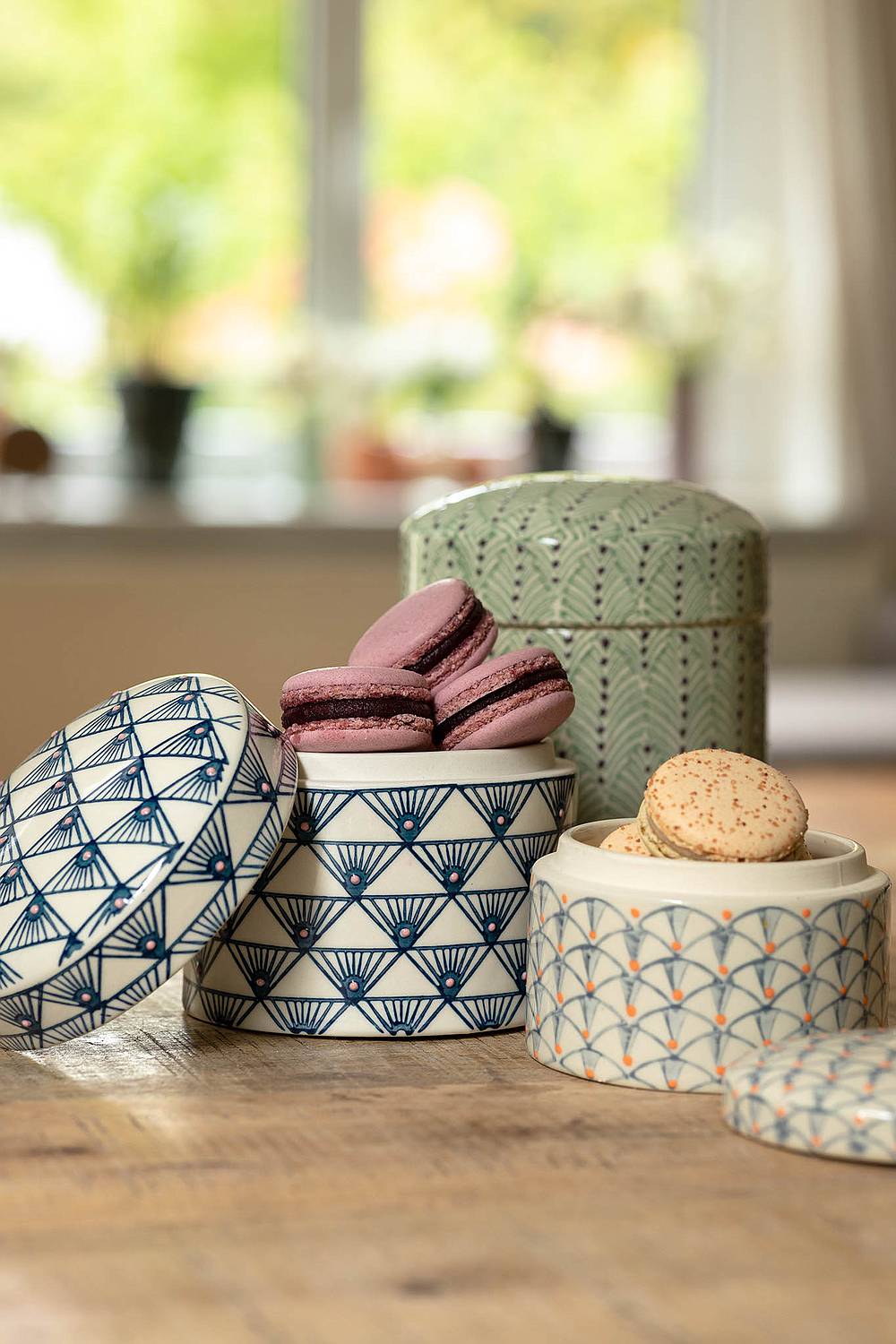 Frische Muster in der Küche gibt es bei dieser Aufbewahrungsdose aus handgestempeltem Steinzeug. Du kannst alle möglichen Inhalte stilvoll und schützend in den Dosen verstauen und sie wunderbar in der Küche, im Badezimmer oder in deinem Wohnzimmer als Hingucker dekorieren.