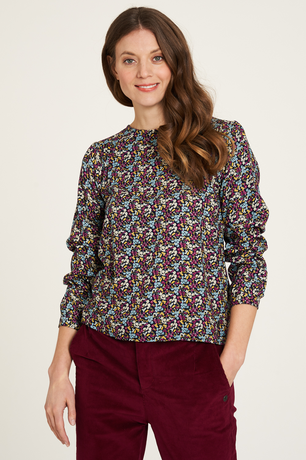 Eine nachhaltige Verarbeitung trifft bei unserer EcoVero Bluse auf eine tolle Optik: Der lässige Schnitt und der Rundhalsausschnitt schenken dir noch mehr Komfort, während knöpfbare Armabschlüsse mit Schlitz und das Cut-out-Detail hinten verspielte Akzente setzen.