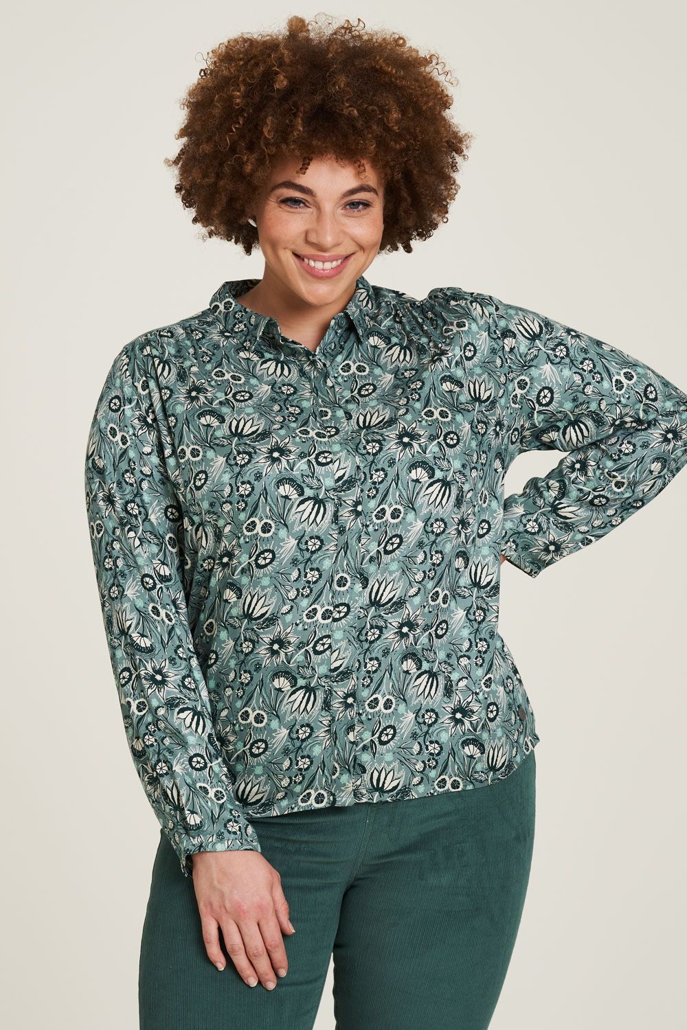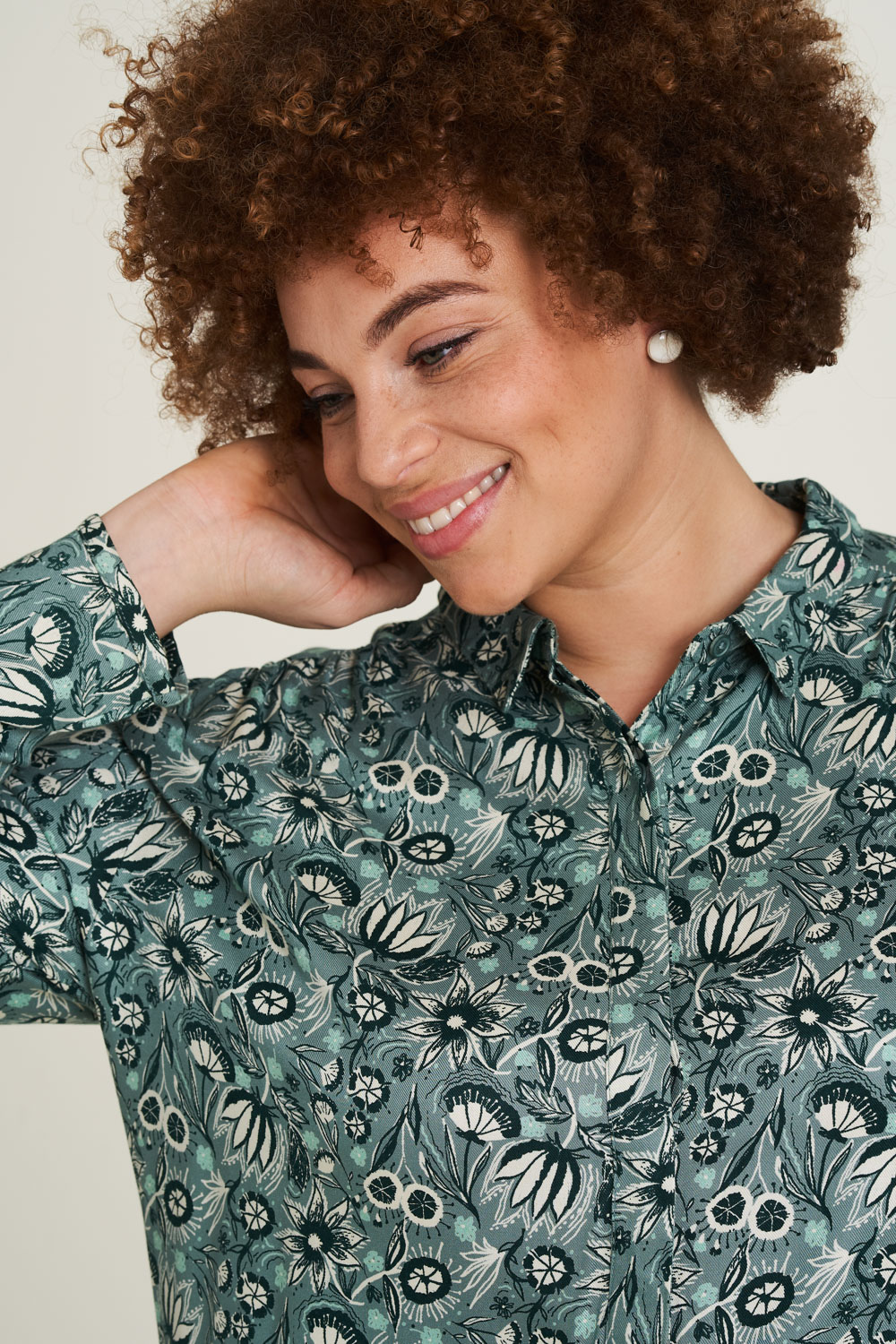Aus nachhaltiger EcoVero Viskose präsentiert sich diese Bluse in fließender Qualität und mit modernem Muster. Ein Kragen, die verdeckte Knopfleiste und die schmalen Bündchen an den Ärmeln verleihen der locker geschnittenen Bluse ein klassisches Flair.