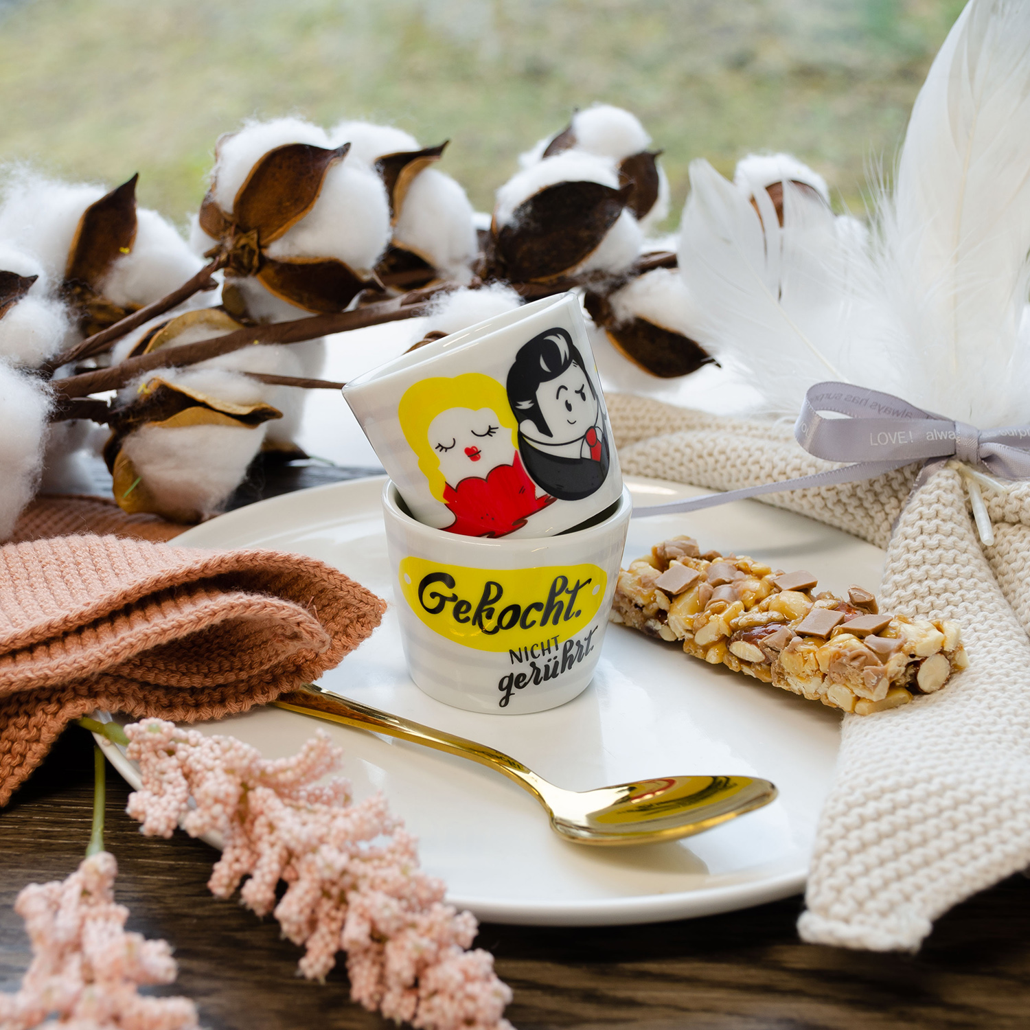 Ein besonderes H-ei-light für den Frühstückstisch ist der coole Eierbecher von GRUSS & CO. Darin schmeckt das Frühstücksei doppelt so gut und mit dem frechen Spruch bekommt man sogar schon in der Früh gute Laune.