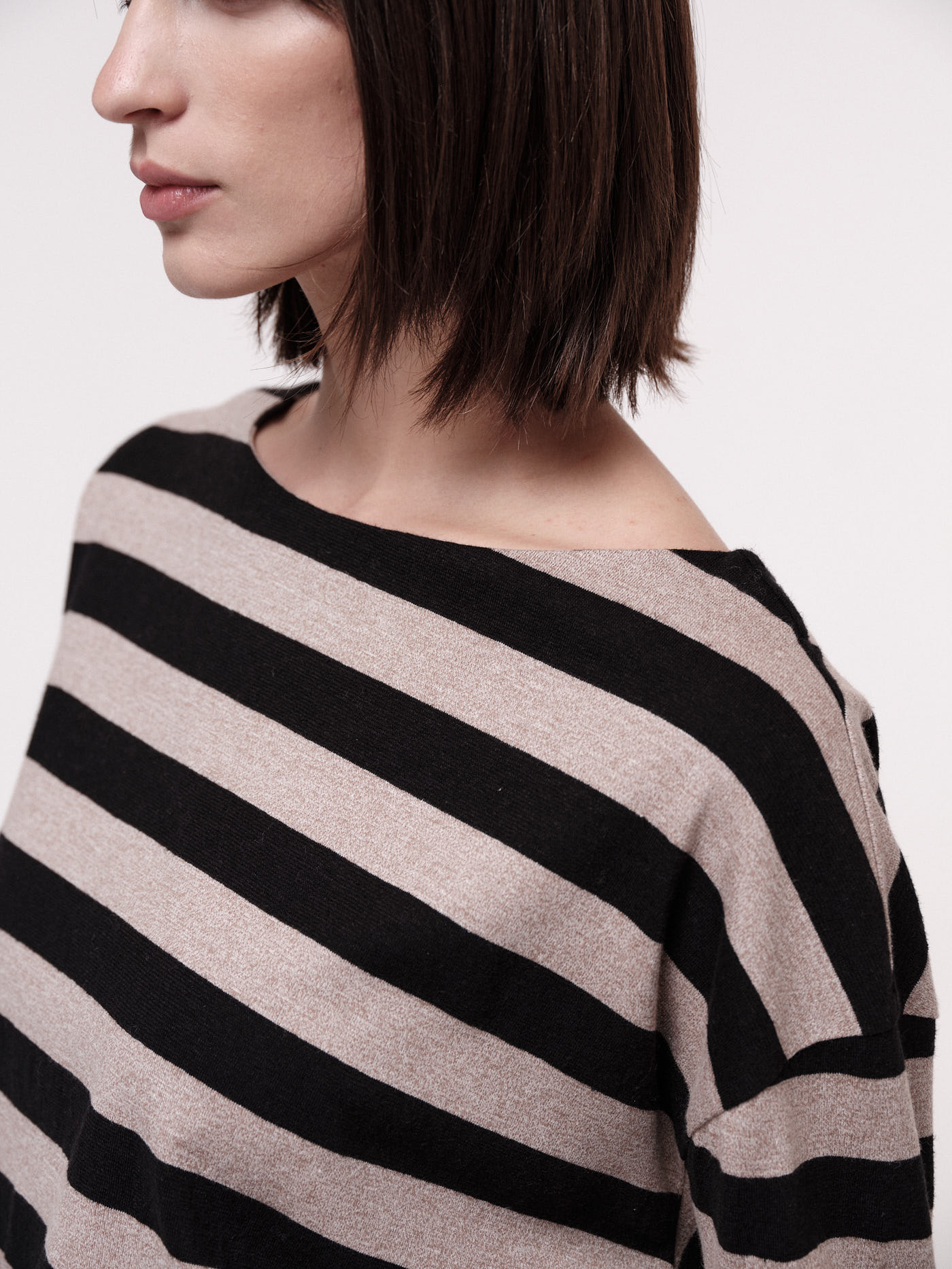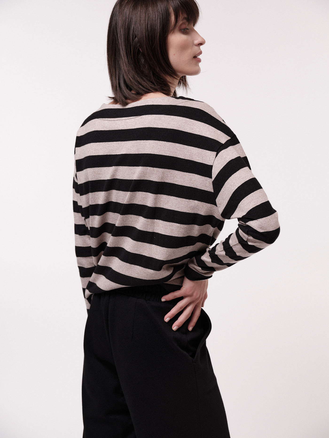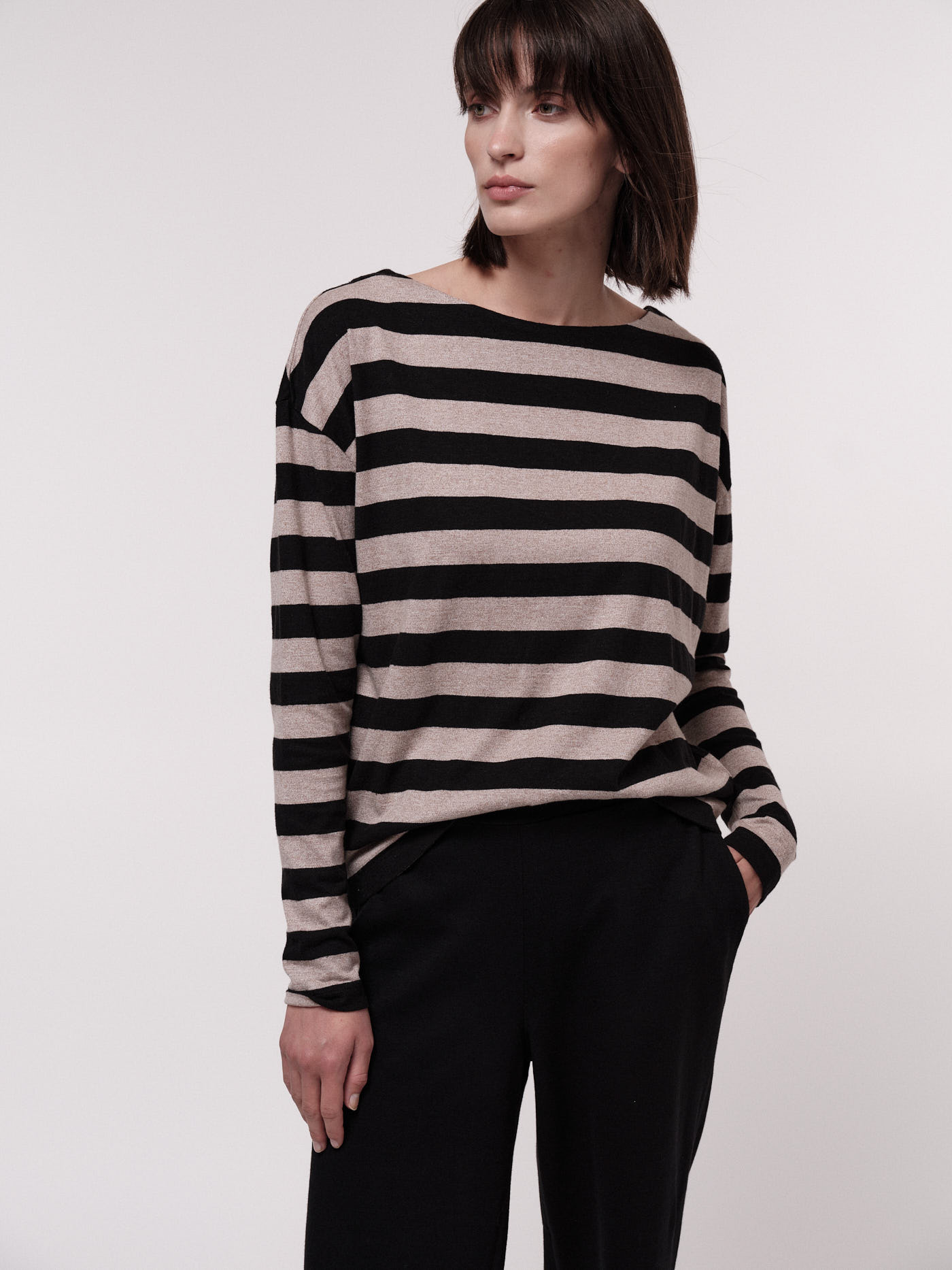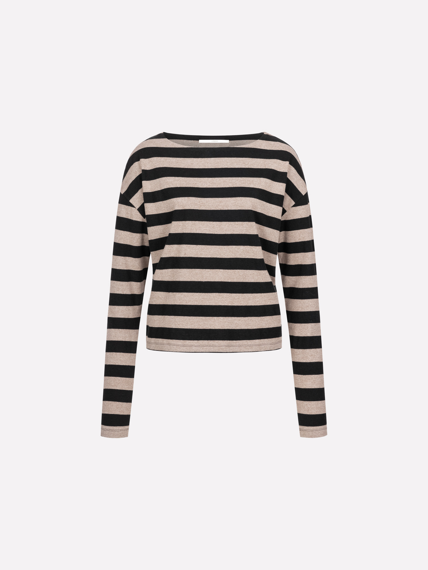 Lässig-cooler Wohlfühllook mit modischen Kontraststreifen: Lockeres Shirt mit Fledermaus-Ärmeln, überschnittener Schulter und hohem U-Bootausschnitt. Das luftig geschnitten Oberteil trägt sich gern zu legeren Jeans oder Chinos. Natürliche Bio-Baumwolle und Hanf sind hautfreundliche Materialien mit hoher Langlebigkeit.