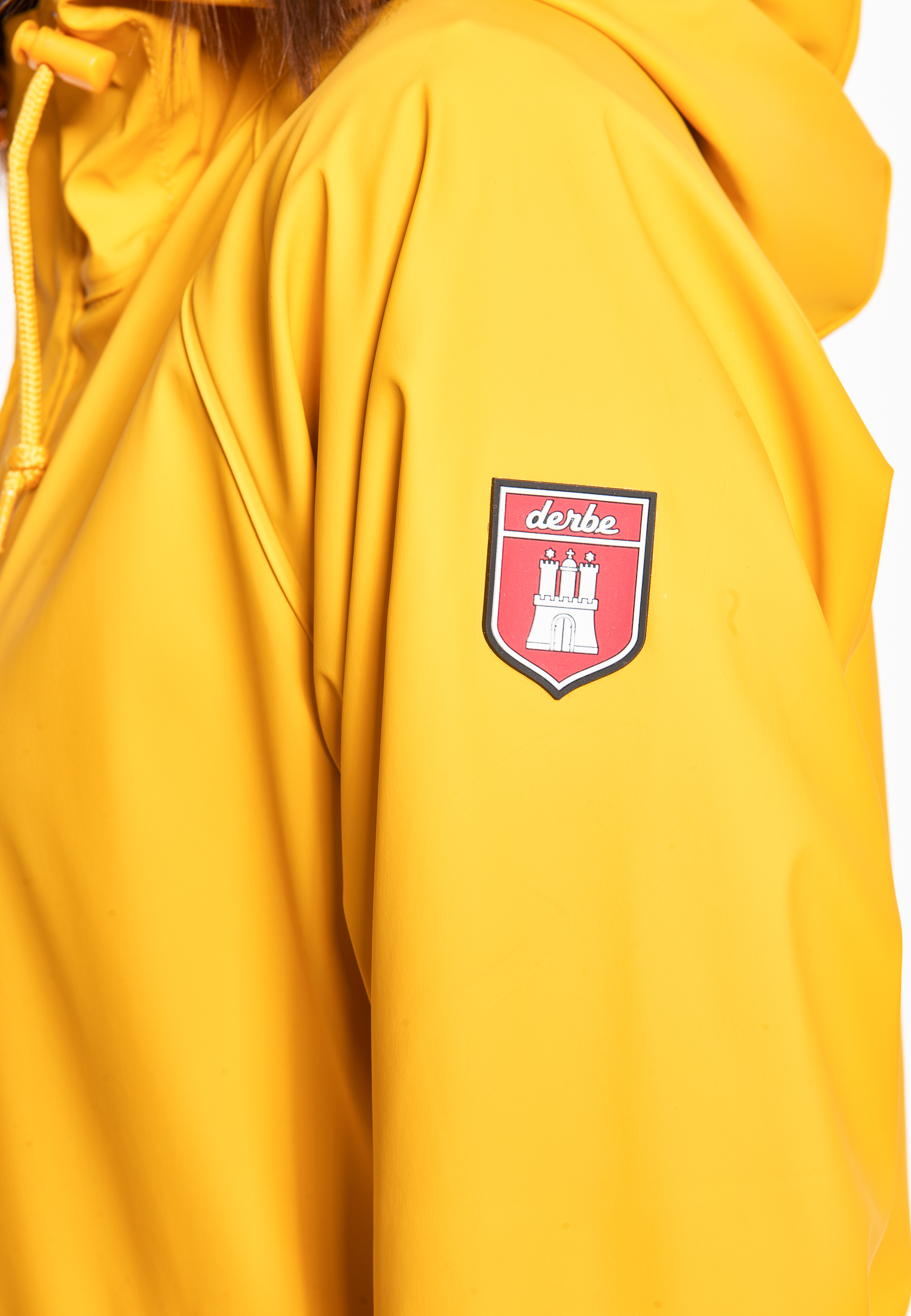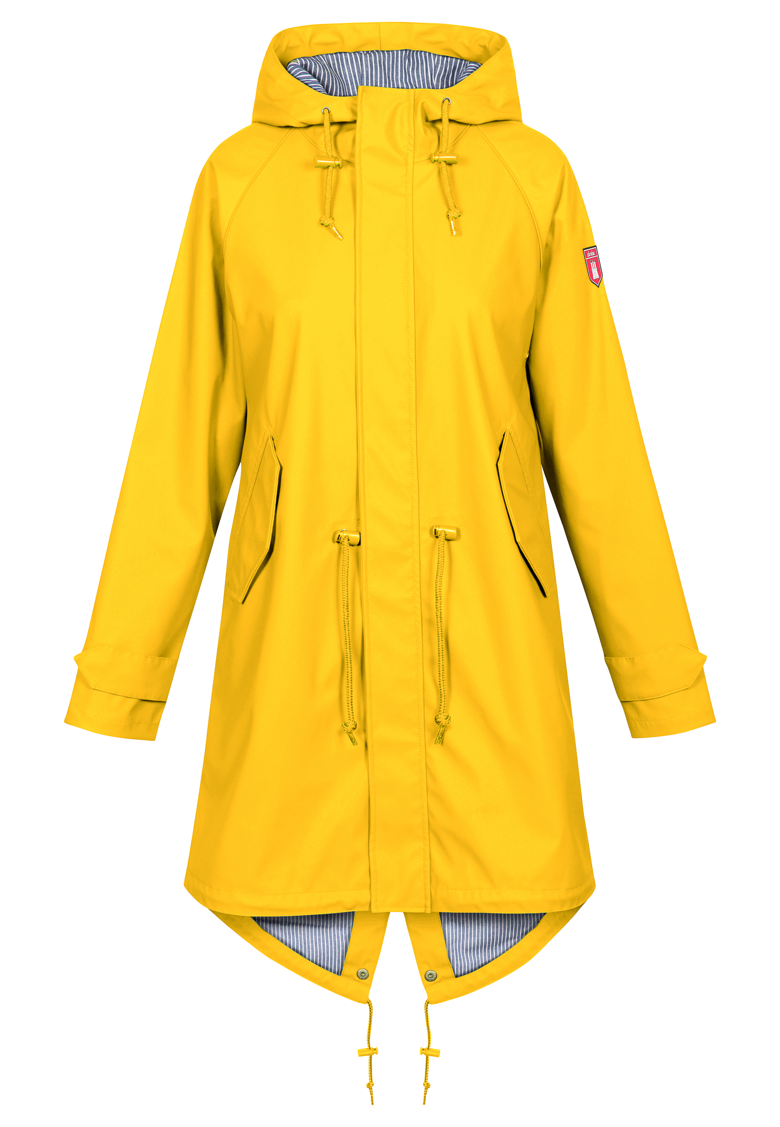 Klassischer gelber Friesennerz mit schönen Baumwollinnenfutter im gestreifetem Fischerhemd Stil. Nachhaltig und umweltfreundlich produziert.