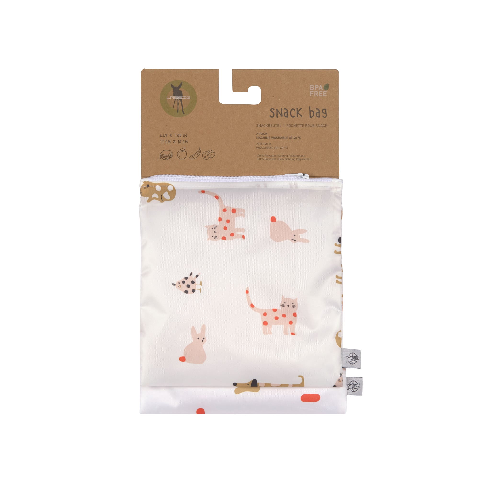 Der fröhliche LÄSSIG Frühstücksbeutel Snack Bag im 2er Pack ist der perfekte Begleiter für die Schule, den Kindergarten oder für unterwegs.