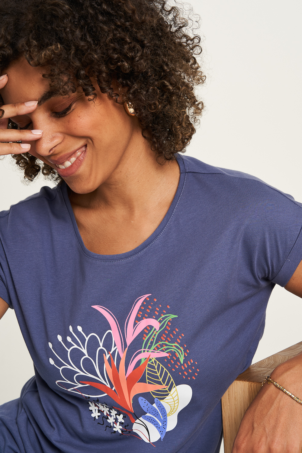 Das T-Shirt von Tranquillo begeistert bereits auf den ersten Blick durch die Brusttasche und den Blumenprint als dezenten Blickfang. Der bequeme Rundhalsausschnitt und kurze Ärmel sorgen für Bewegungsfreiheit und eine extra Portion Lässigkeit - in Kombination mit dem weichen Material bekommst du ein Lieblingsteil, dass du immer und überall tragen möchtest.