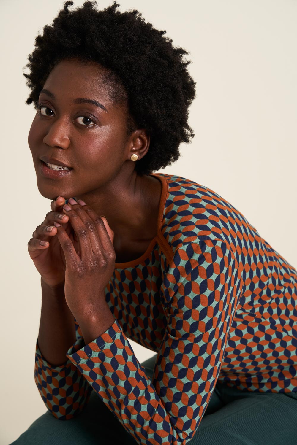 Verarbeitet aus einer elastischen, soften Bio-Baumwolle und ausgestattet mit U-Boot-Ausschnitt, einem lockeren Schnitt und verspielten Falten auf Vorder- und Rückseite kannst du dich über einen tollen Komfort und ein wunderbares Tragegefühl freuen.