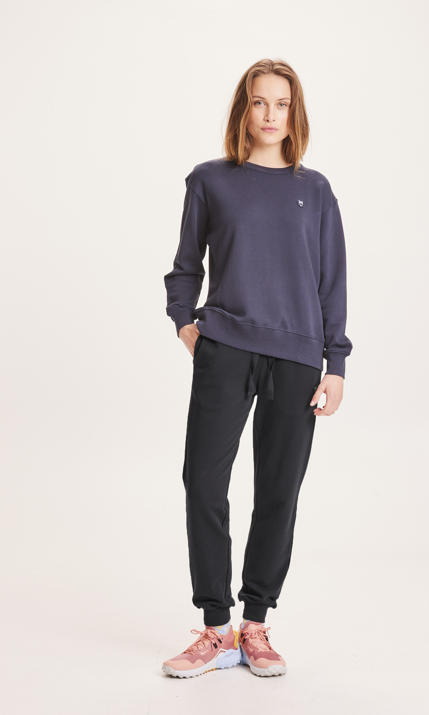 Die Jogginghose besteht aus 100% Bio-Baumwolle hat einen elastischen Bund und Bündchen an den Beinen. Die Weite lässt sich über einen Kordelzug verstellen.