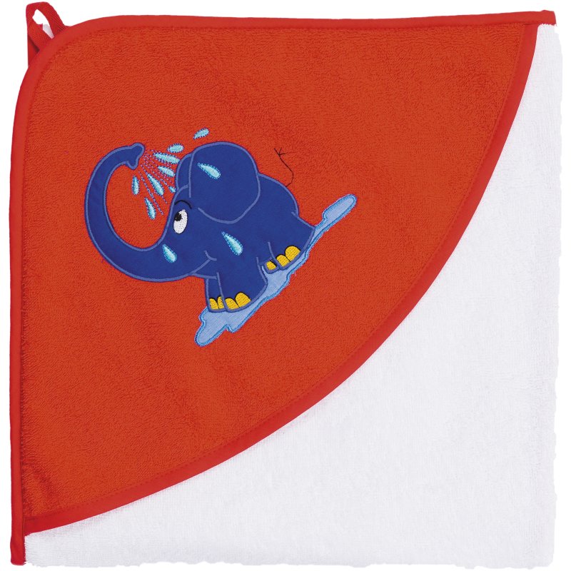 Das Kapuzenbadetuch der kleine blaue Elefant (100x100) in weiß/rot von Smithy ist ein liebevoll gestaltetes Badetuch, das man gerne mit zum Schwimmen oder an den Strand nimmt.