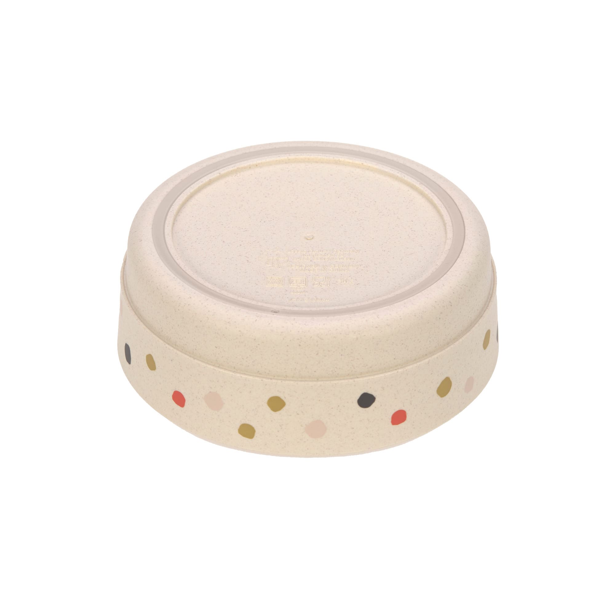 Zum Kindergeschirr Set gehören ein Kinderteller, Schüssel, ein Becher sowie ein Löffel. Der rutschfeste Ring auf der Unterseite des Geschirrs sorgt für einen besseren Halt auf dem Tisch.