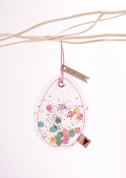 Papieranhänger aus Transparentpapier mit Konfetti gefüllt.