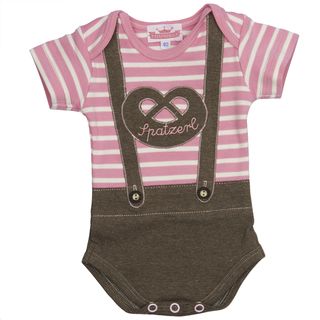- trachtiger Body mit aufgesetzten Hosenträgern und Brezelapplikation mit Spatzerl Stickerei