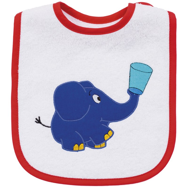 Das 24 x 24 cm große Lätzchen hat einen rot eingefassten Saum zu dem wird das Smithy Lätzchenin mit einem Klettverschluss geschlossen.