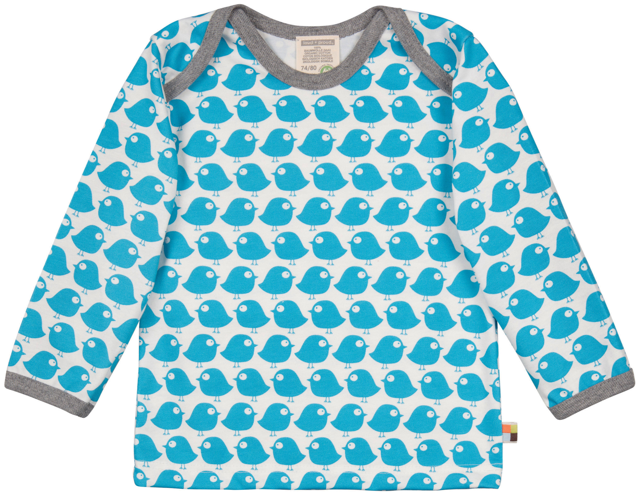 Langarm Shirt mit petrolfarbenen Durck (Wasserbasierender Druck) von der Firma Loud + Proud.