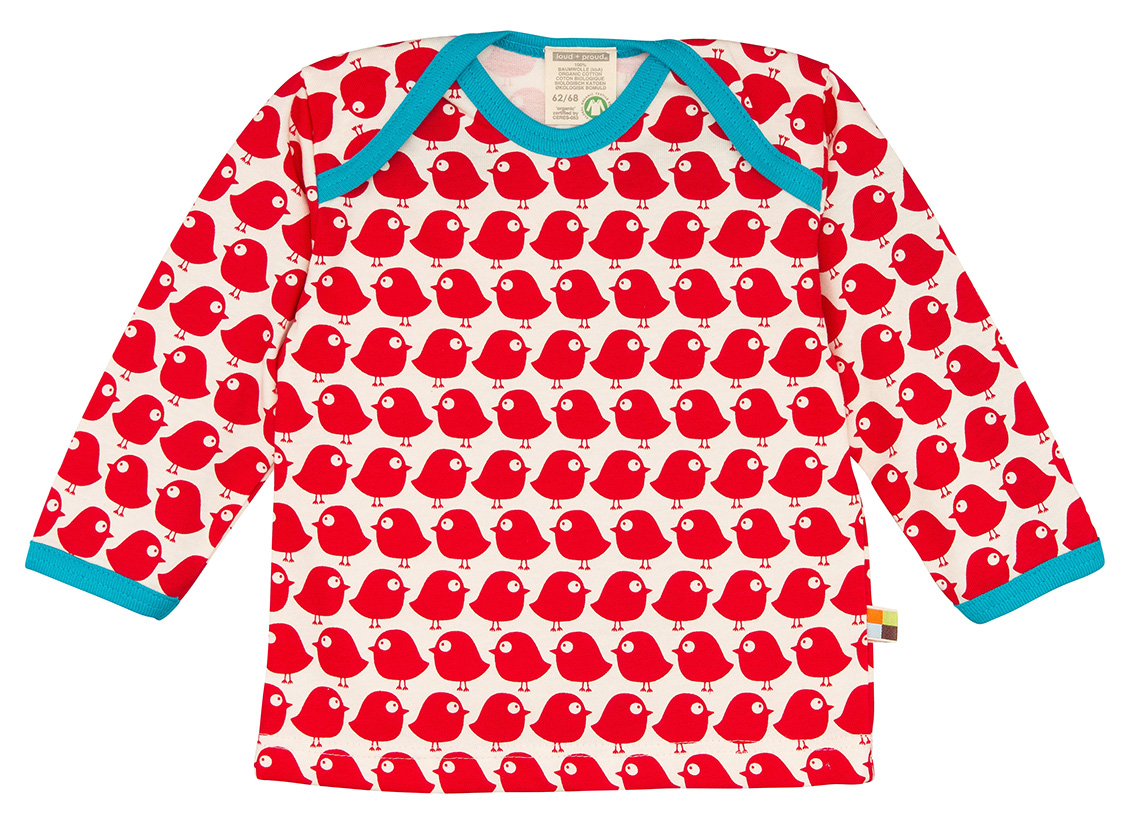 Langarm Shirt mit rotem Spatzen Druck (Wasserbasierender Druck) von der Firma Loud + Proud.