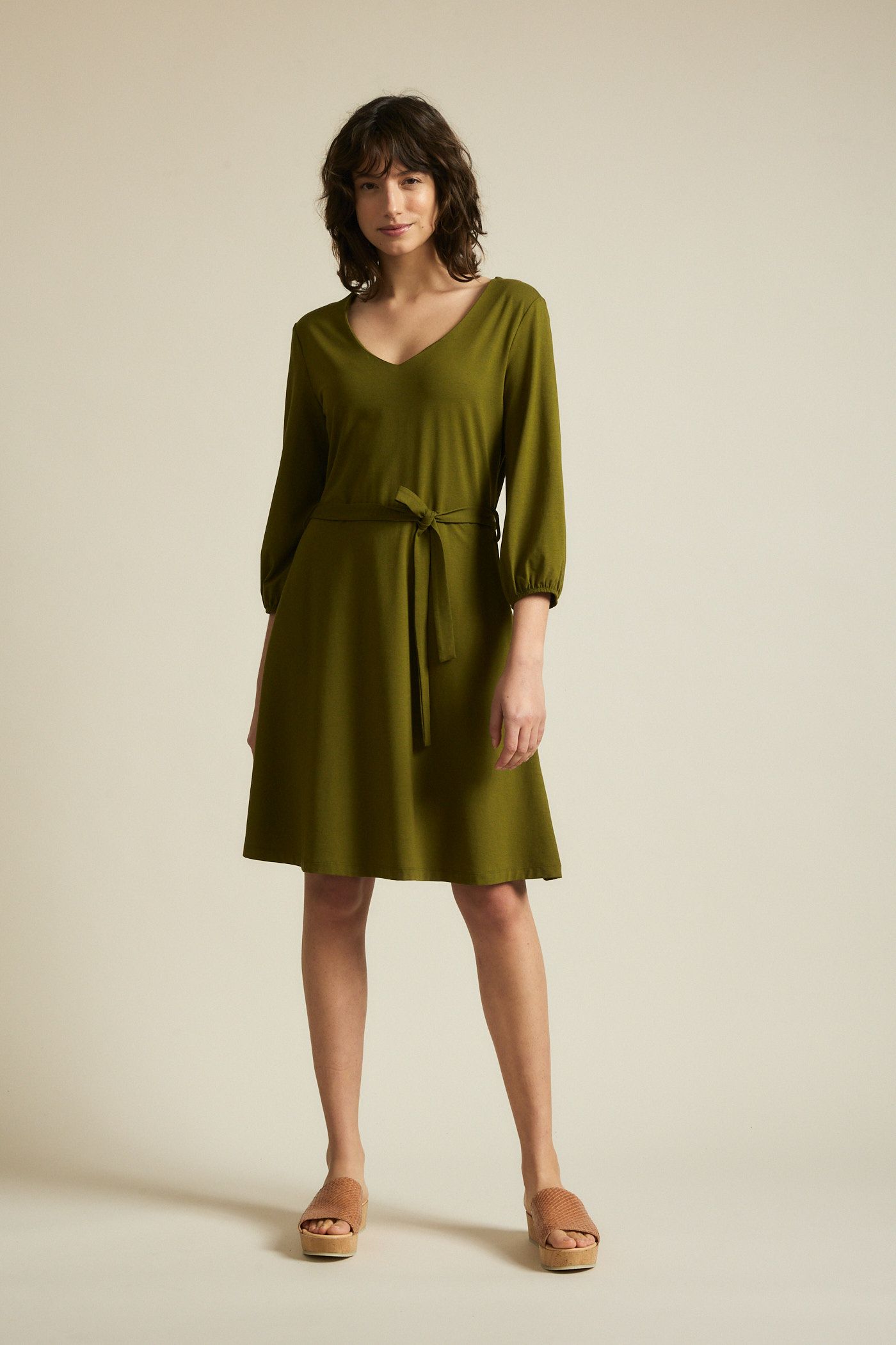 Das Kleid ist fair produziert und vegan, weich fließend in perfektionierter Passform.