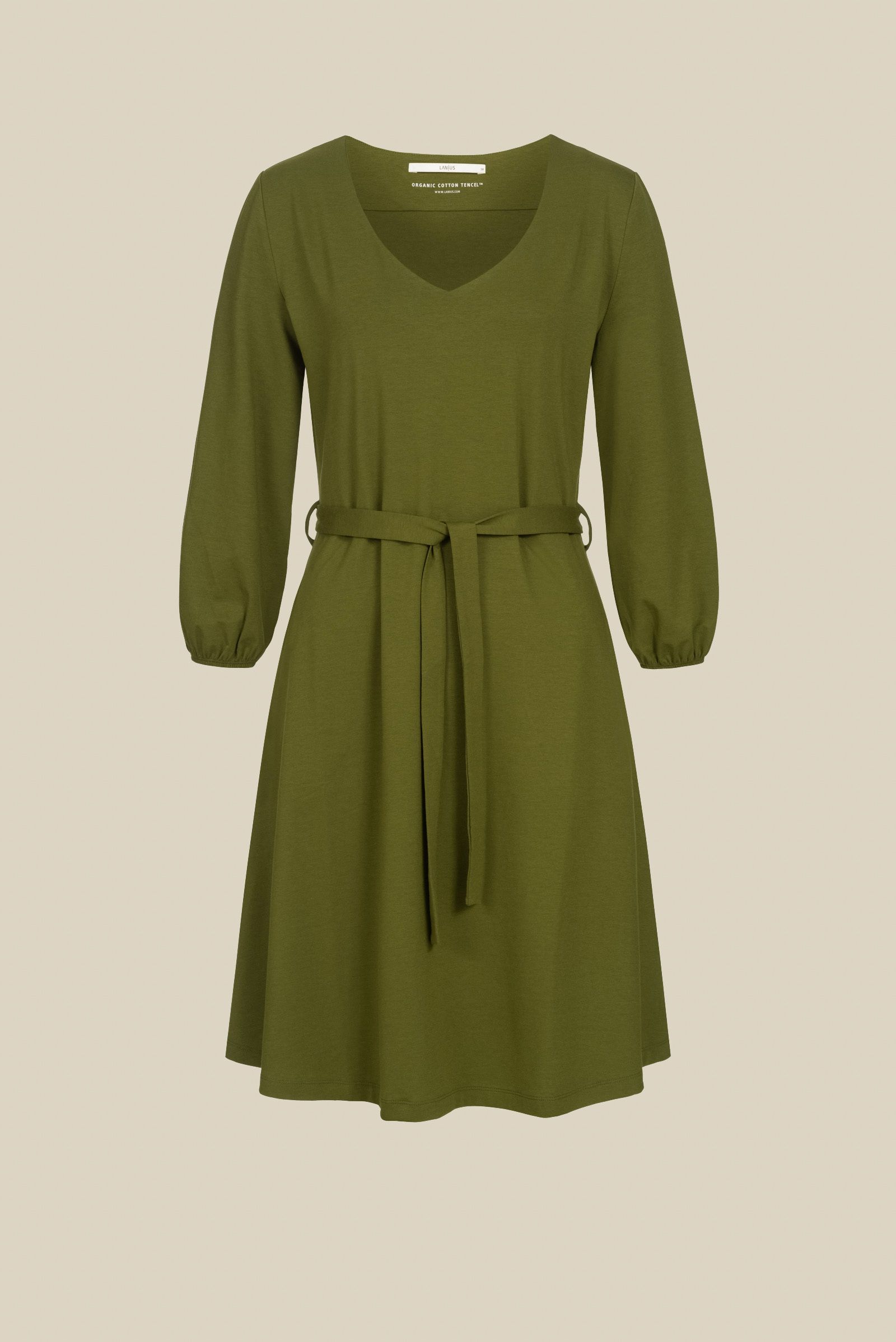 Die Materialmischung aus Bio-Baumwolle, TENCEL™ Modal und Elasthan ist blickdicht, elastisch, anschmiegsam sowie formbeständig, mit dem Bindeband bringen sie das Kleid auf Taille und erhalten eine formschönen Silhouette.