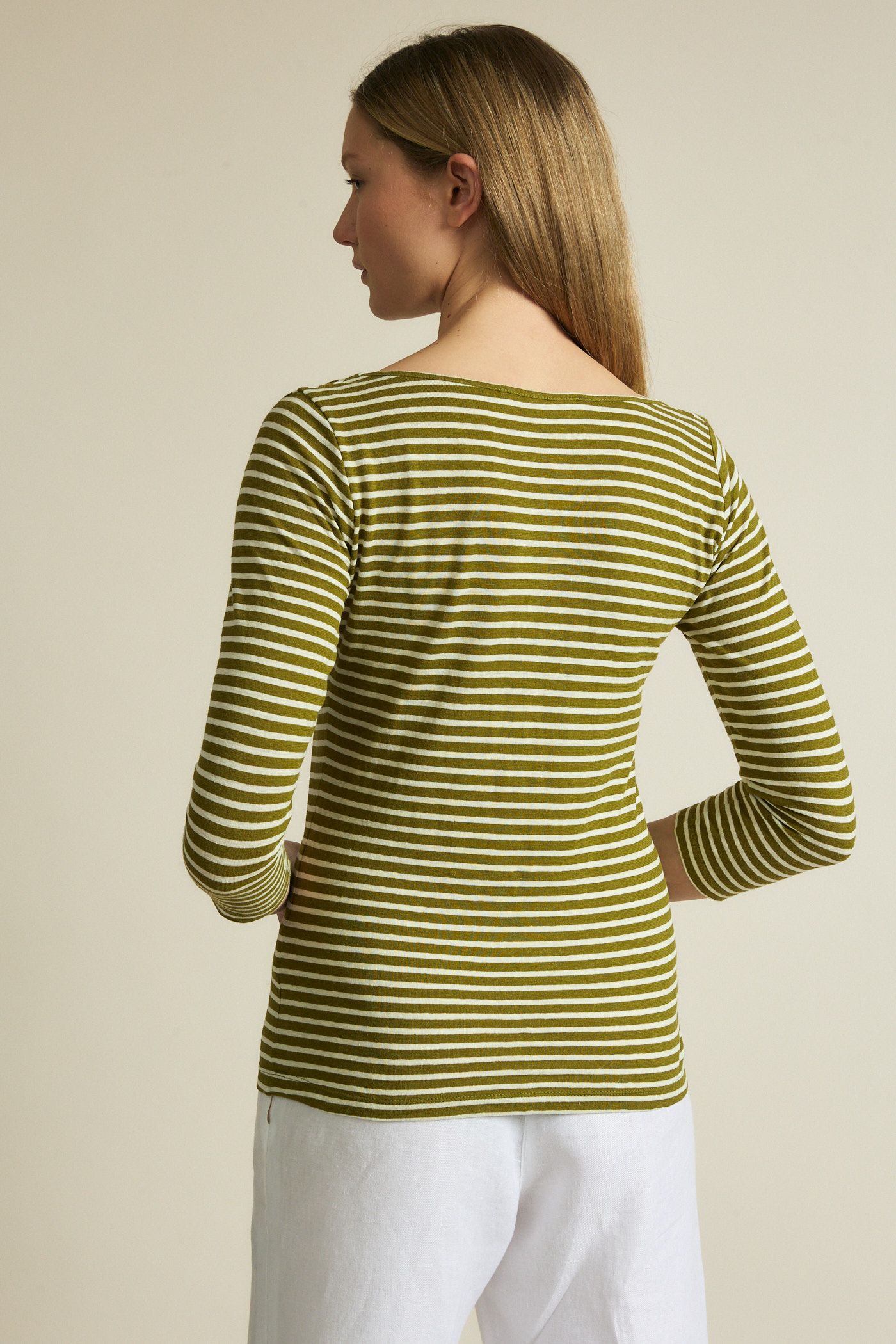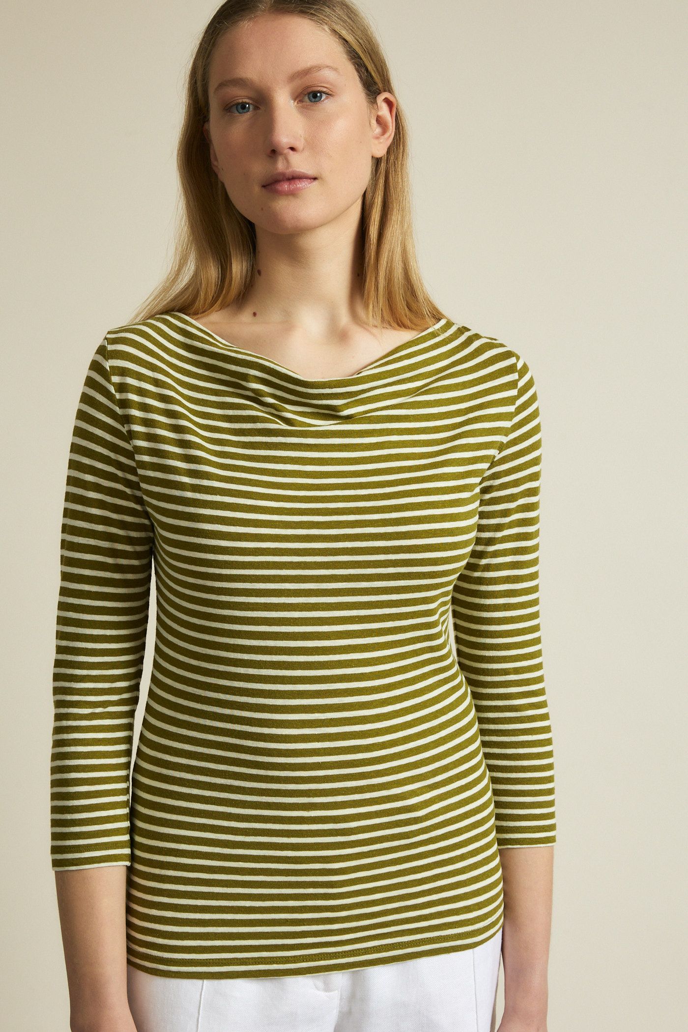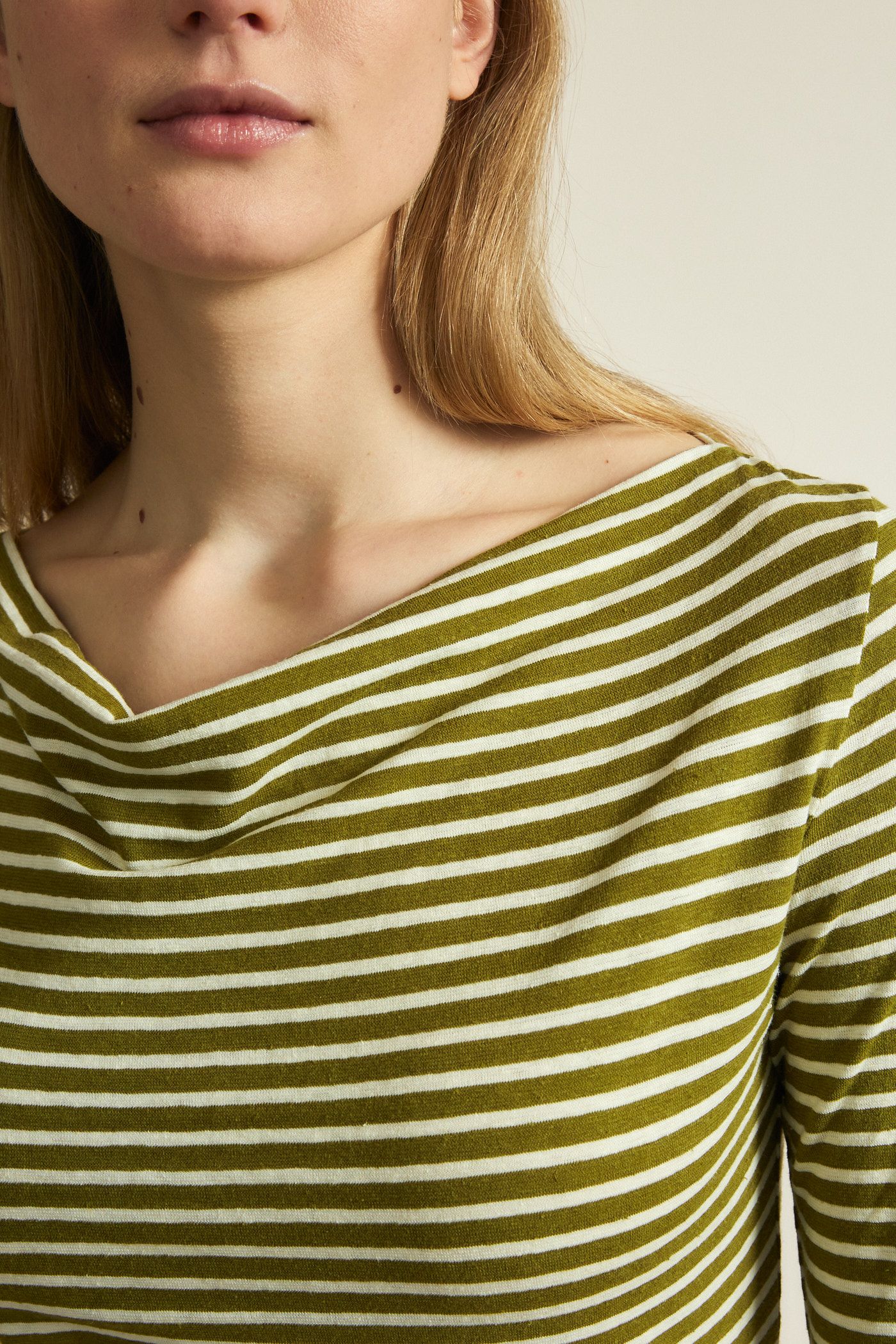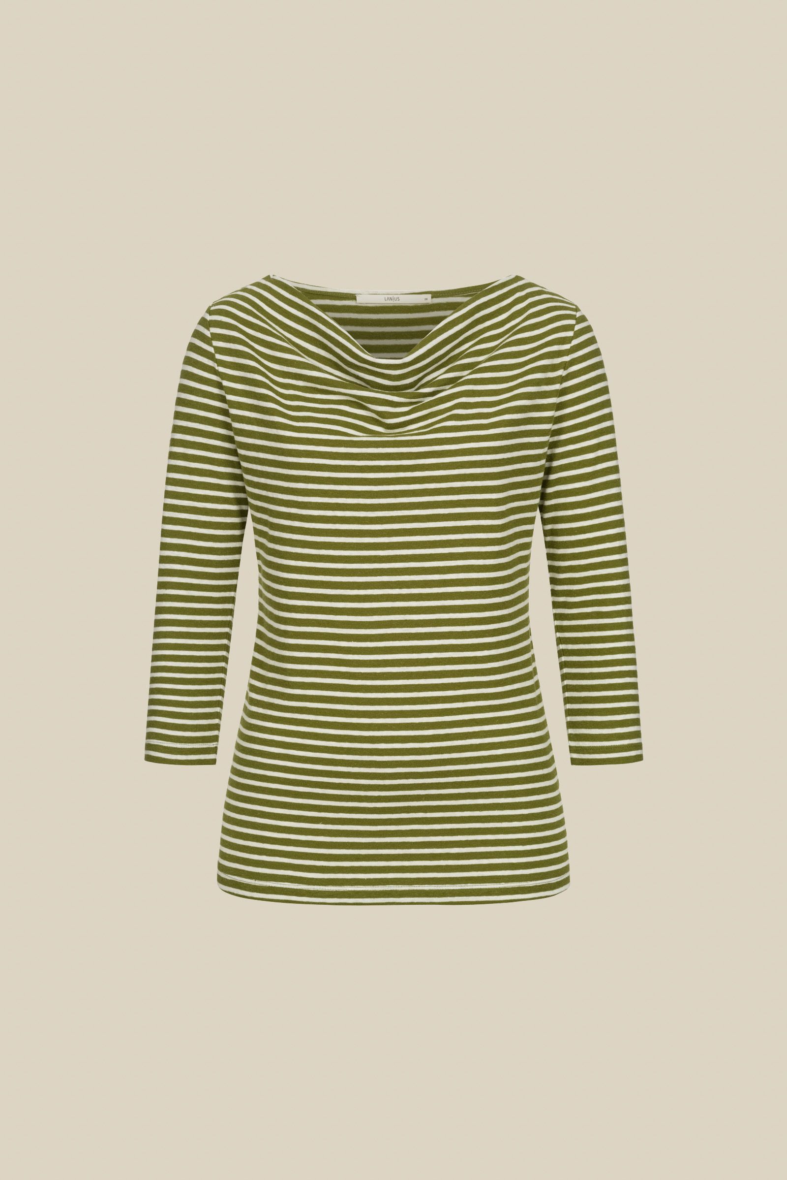 Mobile Preview: LANIUS - Wasserfallshirt mit Streifen - olive