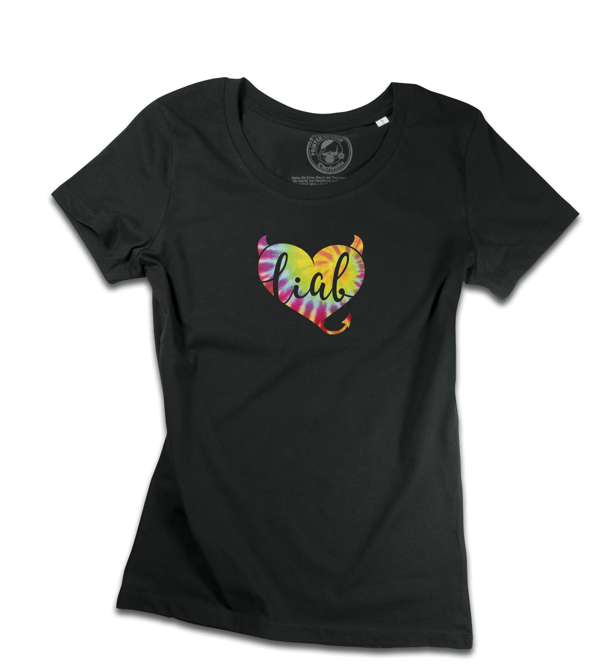 Brust-Aufdruck im digitalen Direct-to-Garment Druckverfahren mit hautfreundlichen, wasserbasierten Druckfarben (schadstoff- und lösemittelfrei, biologisch abbaubar).