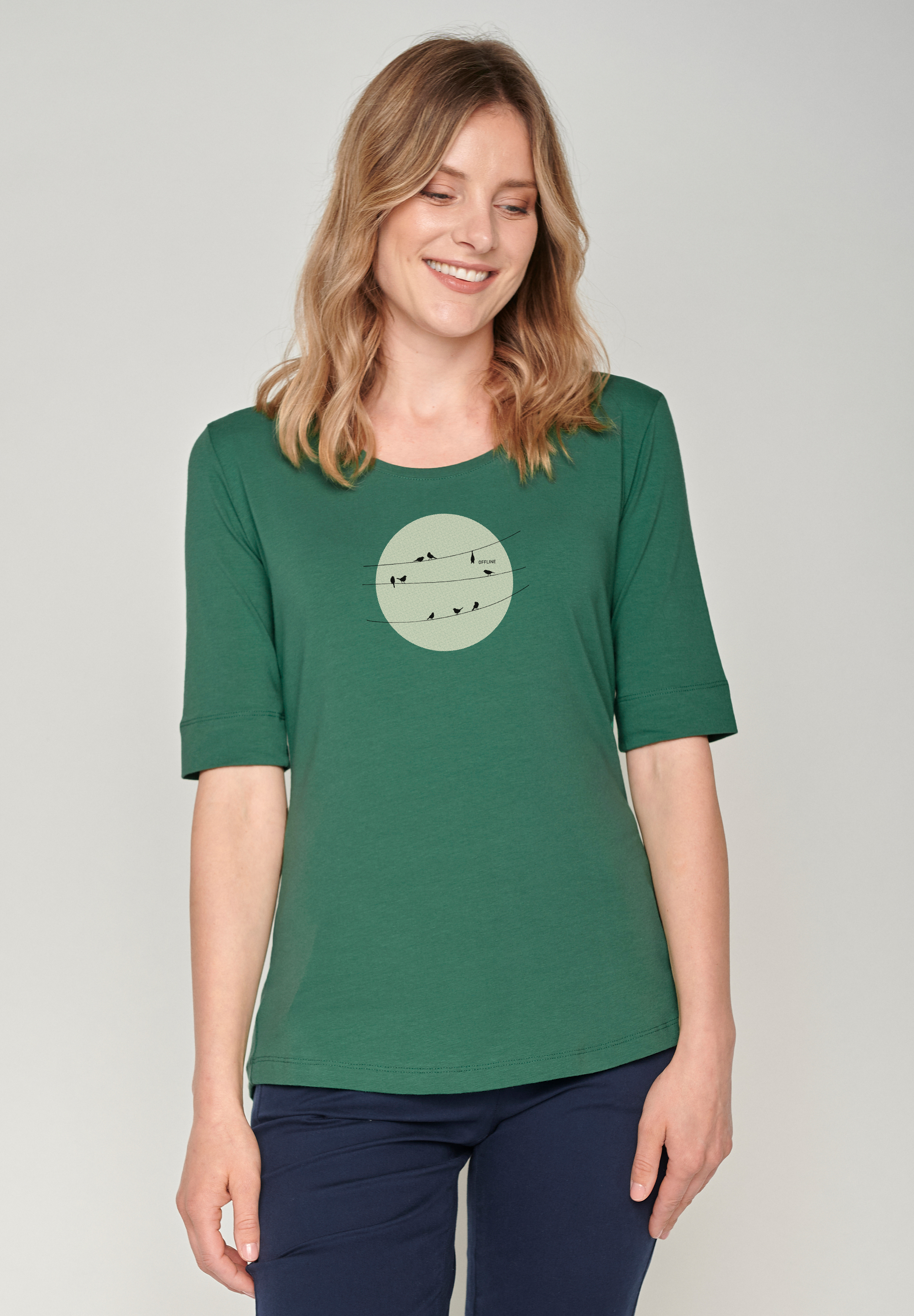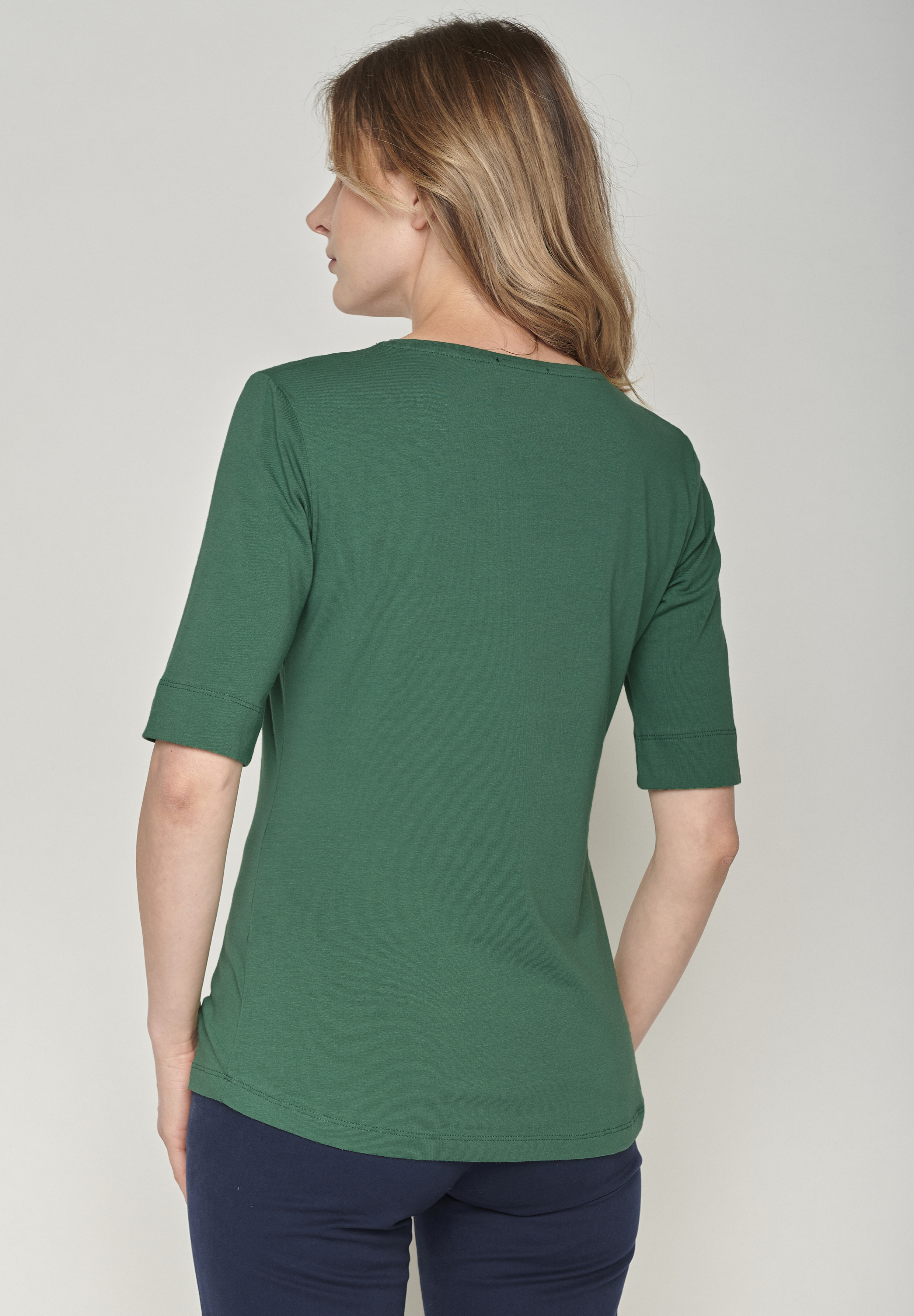 Das Shirt 'Deep' mit 3/4 Ärmeln besteht aus 95% Bio-Baumwolle und 5% Elasthan. Es ist schmal geschnitten und hat einen schönen Rundhalsausschnitt.