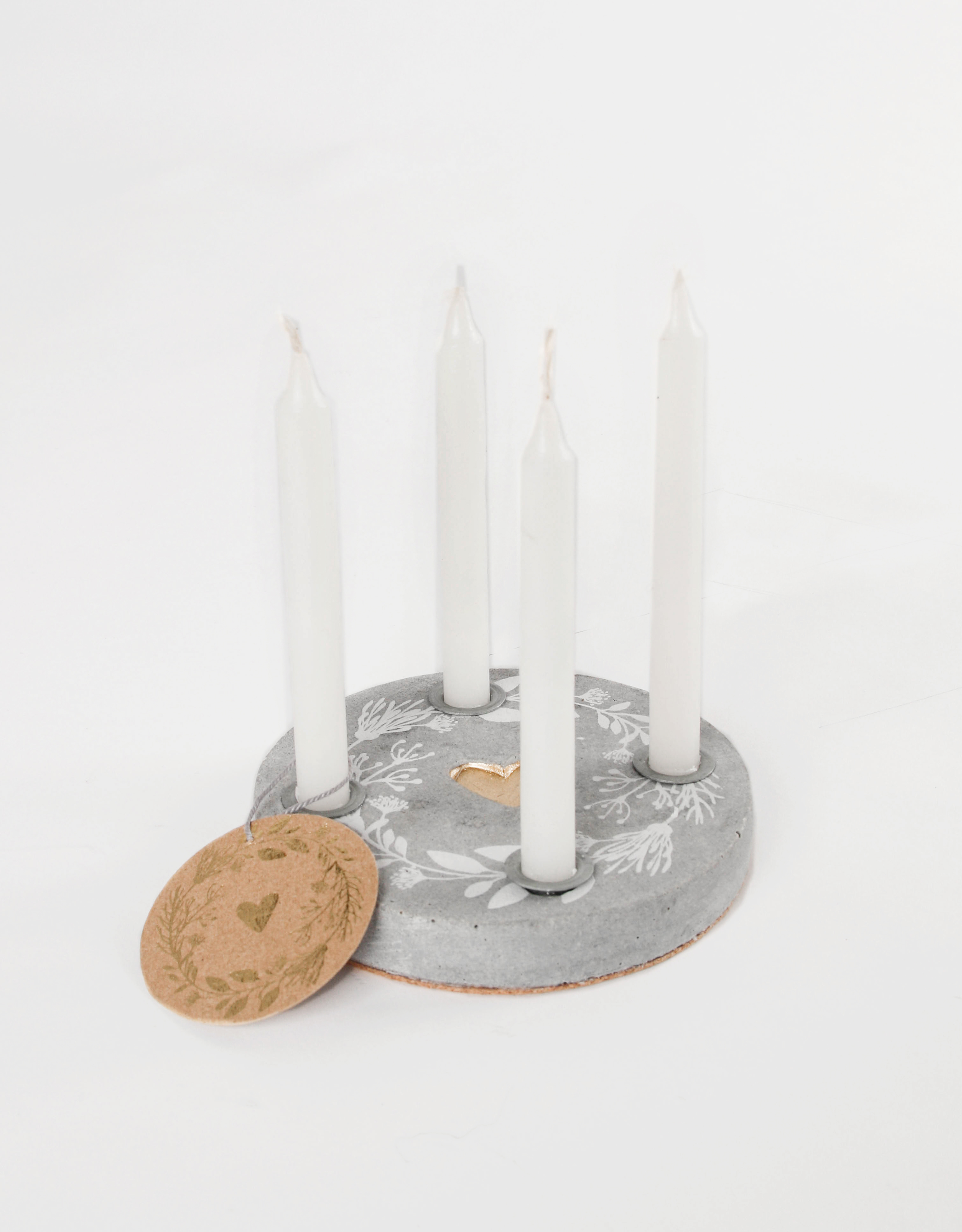 Maße (HxØ): 1,4 x 10 cm Gewicht: 0,39 kg Material: Lichkreis:Terrazzo/Korkboden Kerzenhalter: Metall Kerze: Wachs Anhänger: Papier Hersteller: GOOD OLD FRIENDS