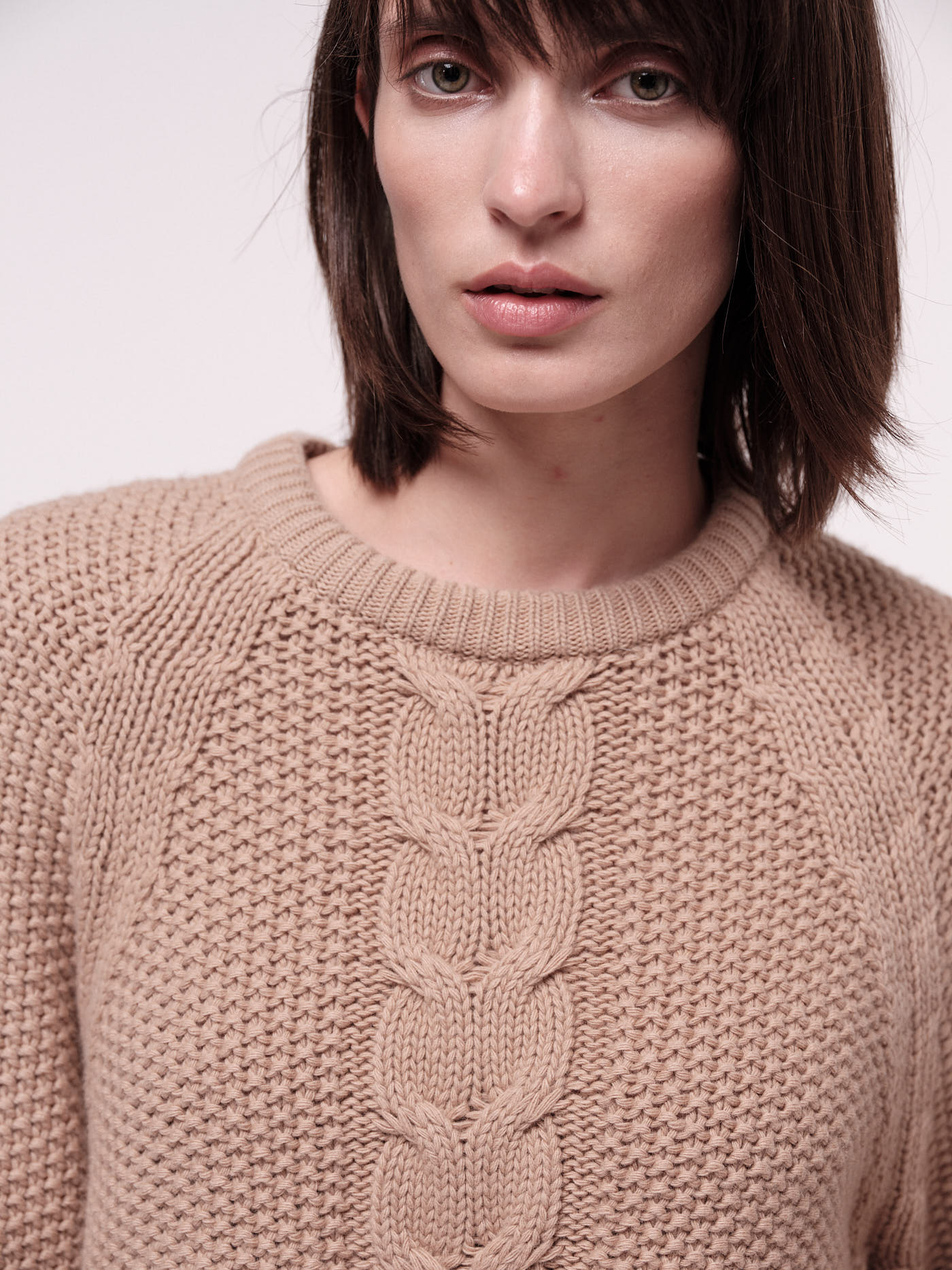 Mobile Preview: Pullover mit Zopfmuster -  Camel