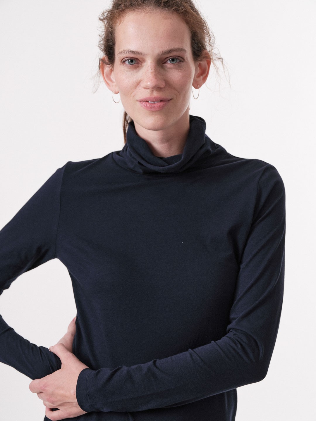 Preview: Rollkragenshirt GOTS - night blue