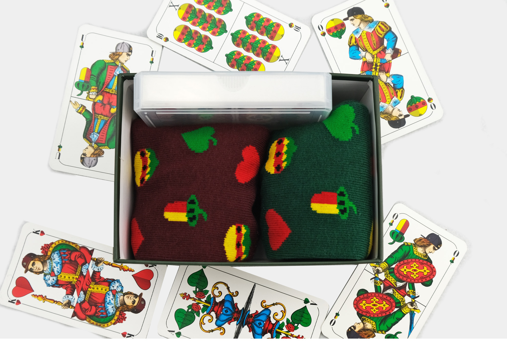 Damit auch weiterhin fleißig aufgespielt werden kann, beinhaltet jede Schafkopf Sockenbox ein kostenloses BC-Kartenset.