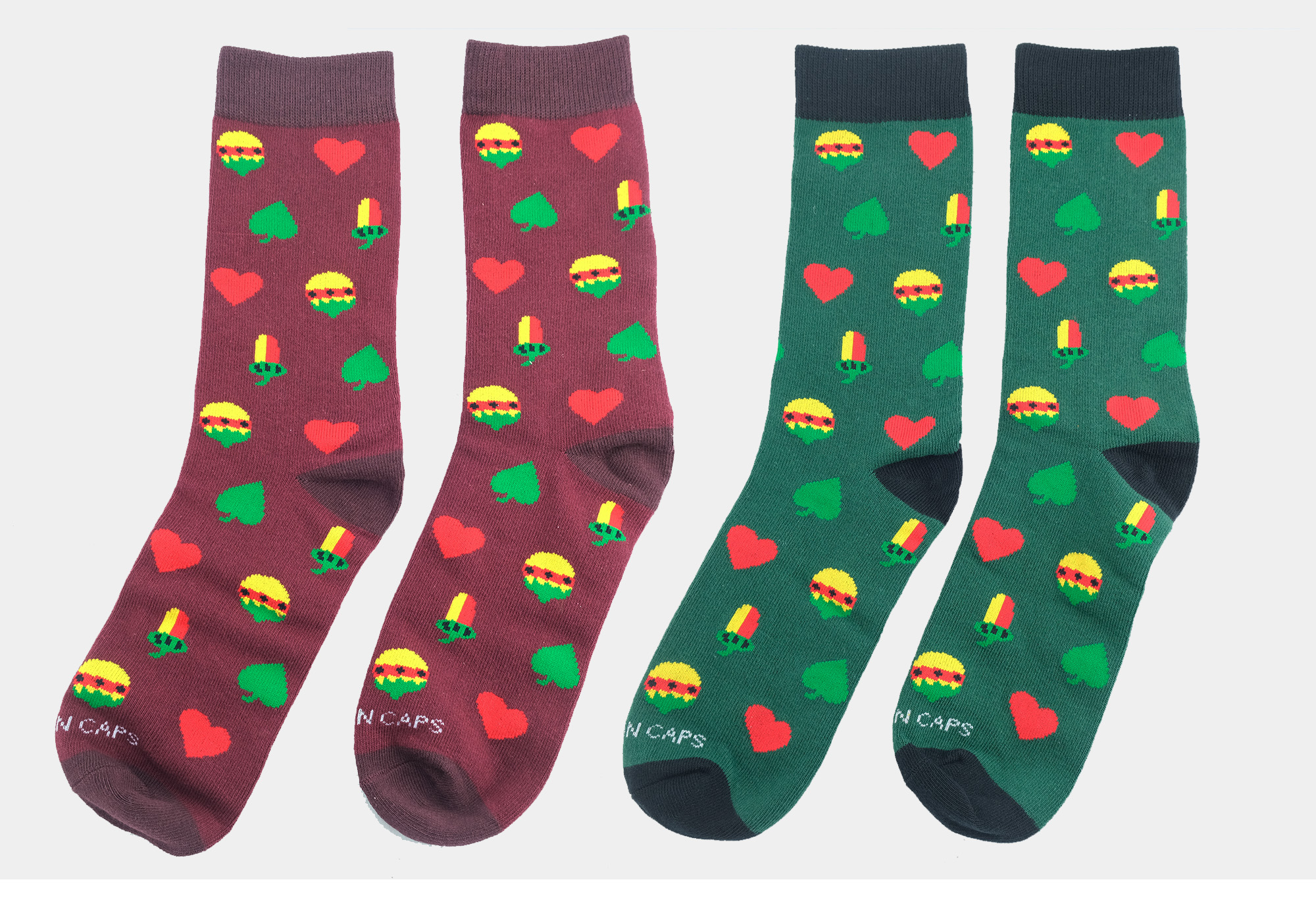 “Ich spiel’ auf die Blaue.” - “Da musst du schmieren!” Ob im Biergarten oder im Wirtshaus, beim Karteln ist es meistens wild - aber man ist immer in bester Gesellschaft. Mit diesen “Schafkopf” Socken halten wir eines der ältesten bayerischen Kulturgüter in Ehren.