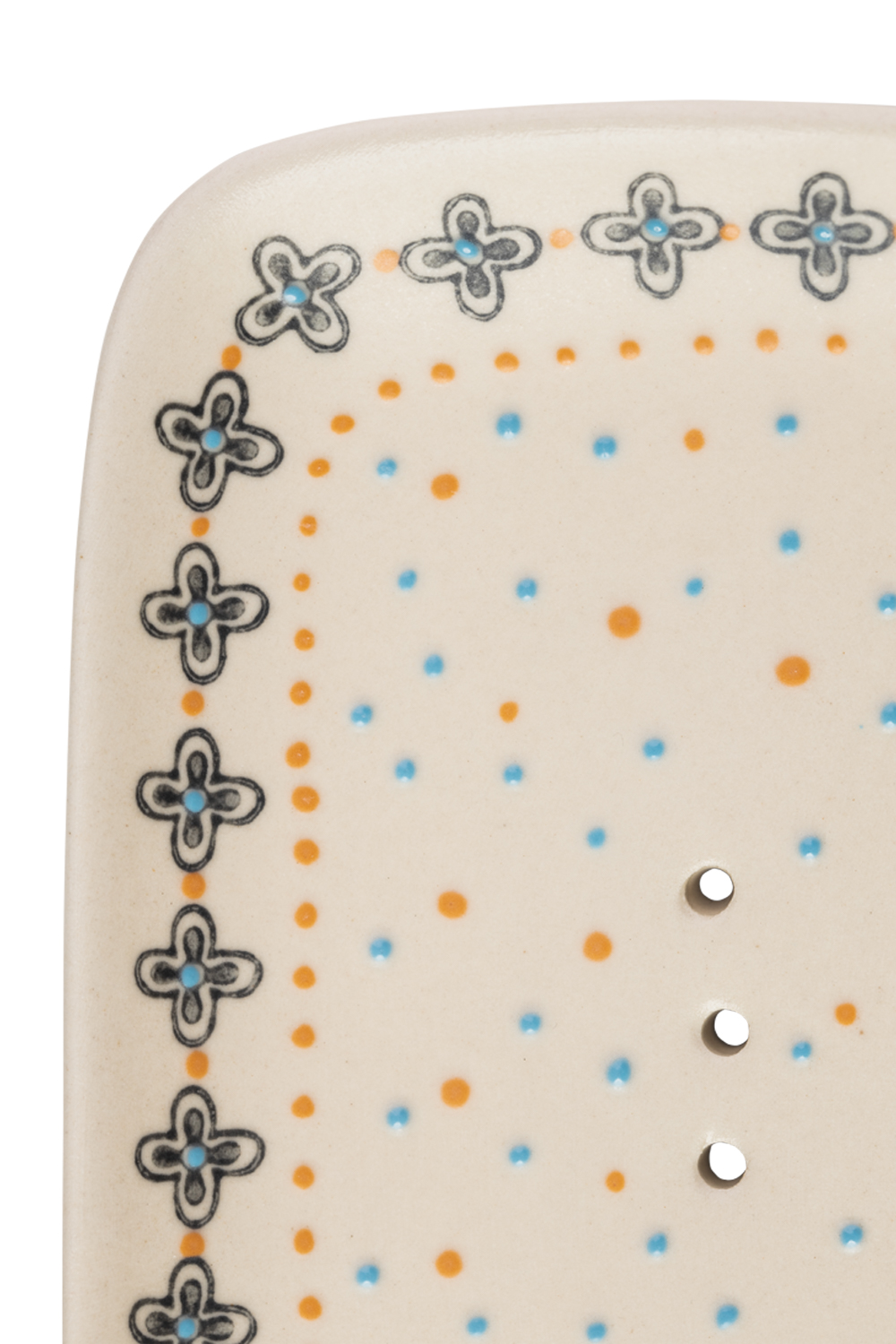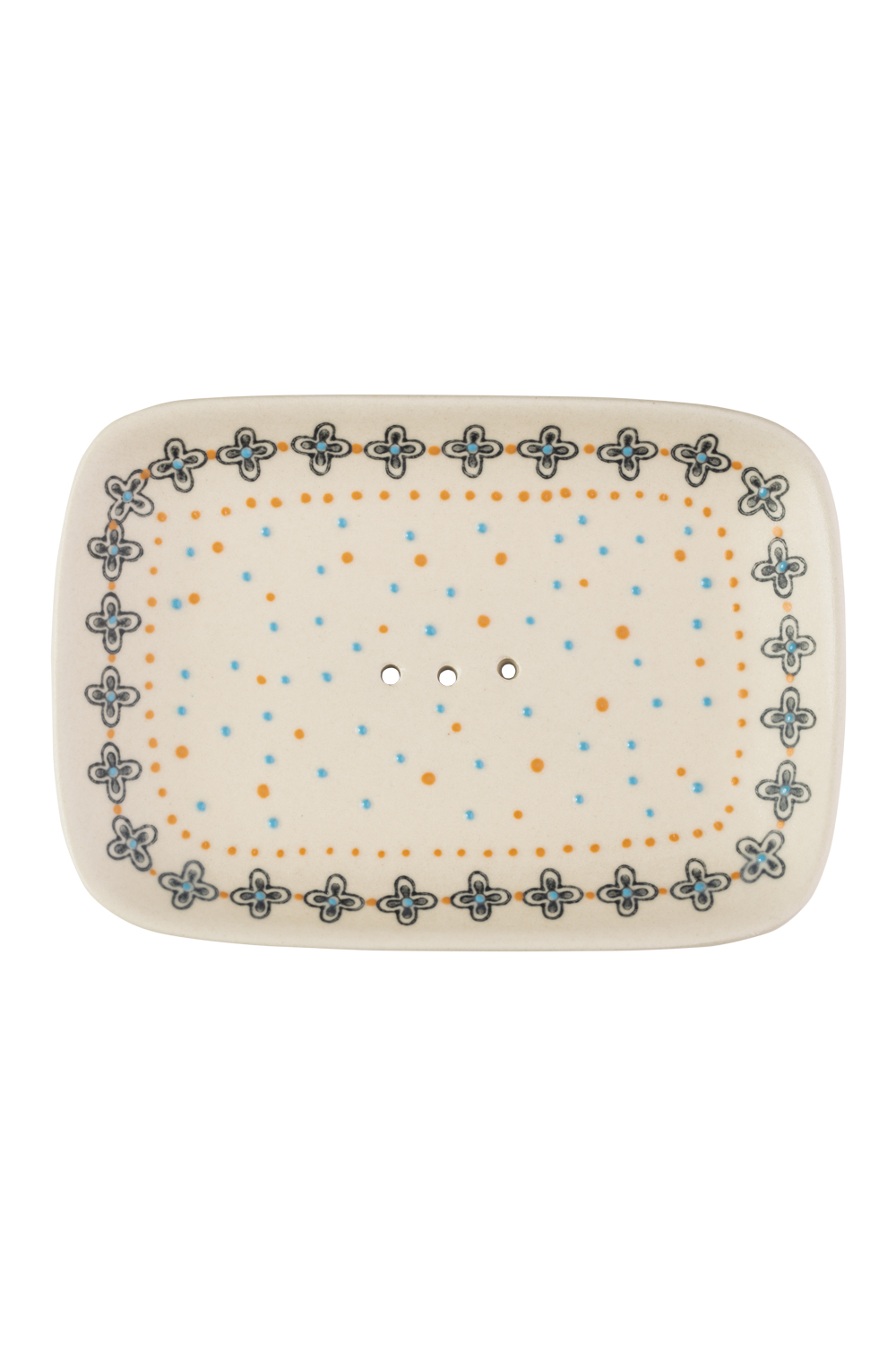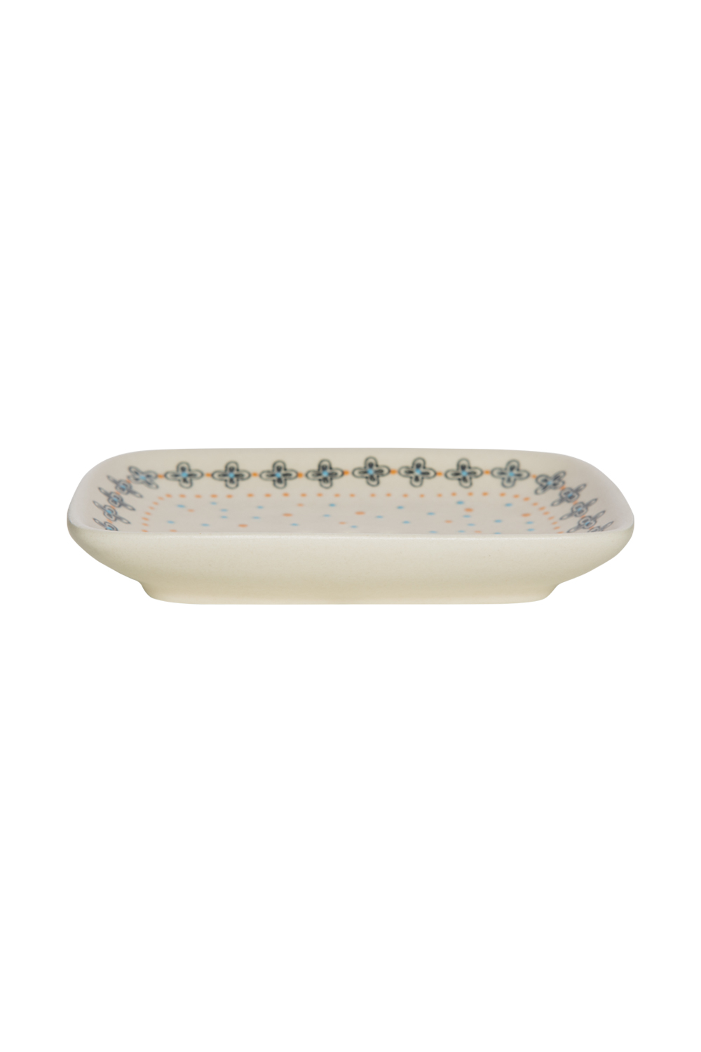 Mit dieser hübschen Seifenschale in klassicher eckigen Form setzt du tolle Akzente. Dank der handgestempelten Muster und der matten Glasur sorgt dieses praktische Accessoire für einen Hingucker. Die bewährten Löcher für den Wasserablauf sorgen dafür, dass deine Seife immer trocken liegt.