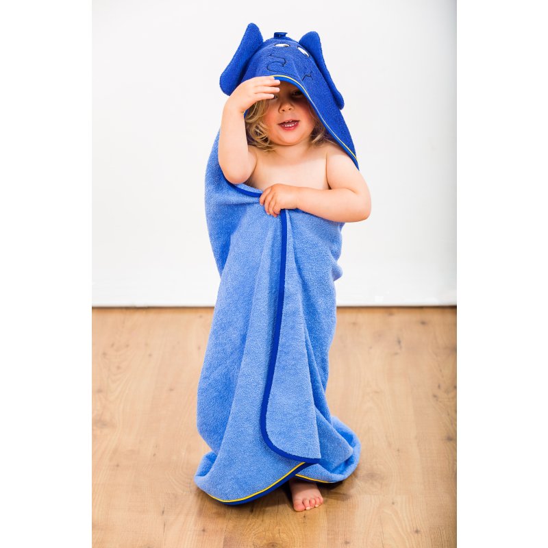 Nach dem Baden bietet das Kapuzenbadetuch ELEFANT (100x100) in blau von Smithy ein kuscheliges Vergnügen.Frotteeweich mit dem kleinen blauen Elefanten werden die kleinen Wasserratten im Nu wieder trocken. Der blaue Elefant, bekannt aus "Die Sendung mit der Maus" ist aufwendig auf der Kapuze umgesetzt. Die Kapuze mit Elefantenohren und aufgesticktem Gesicht bezaubert jedes Kind.