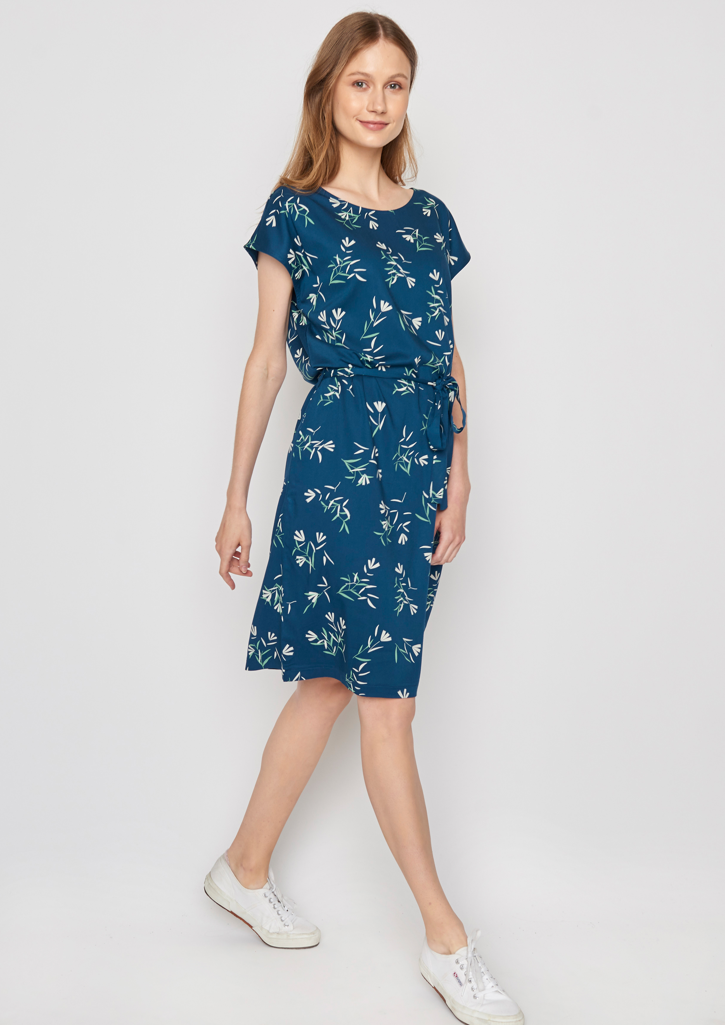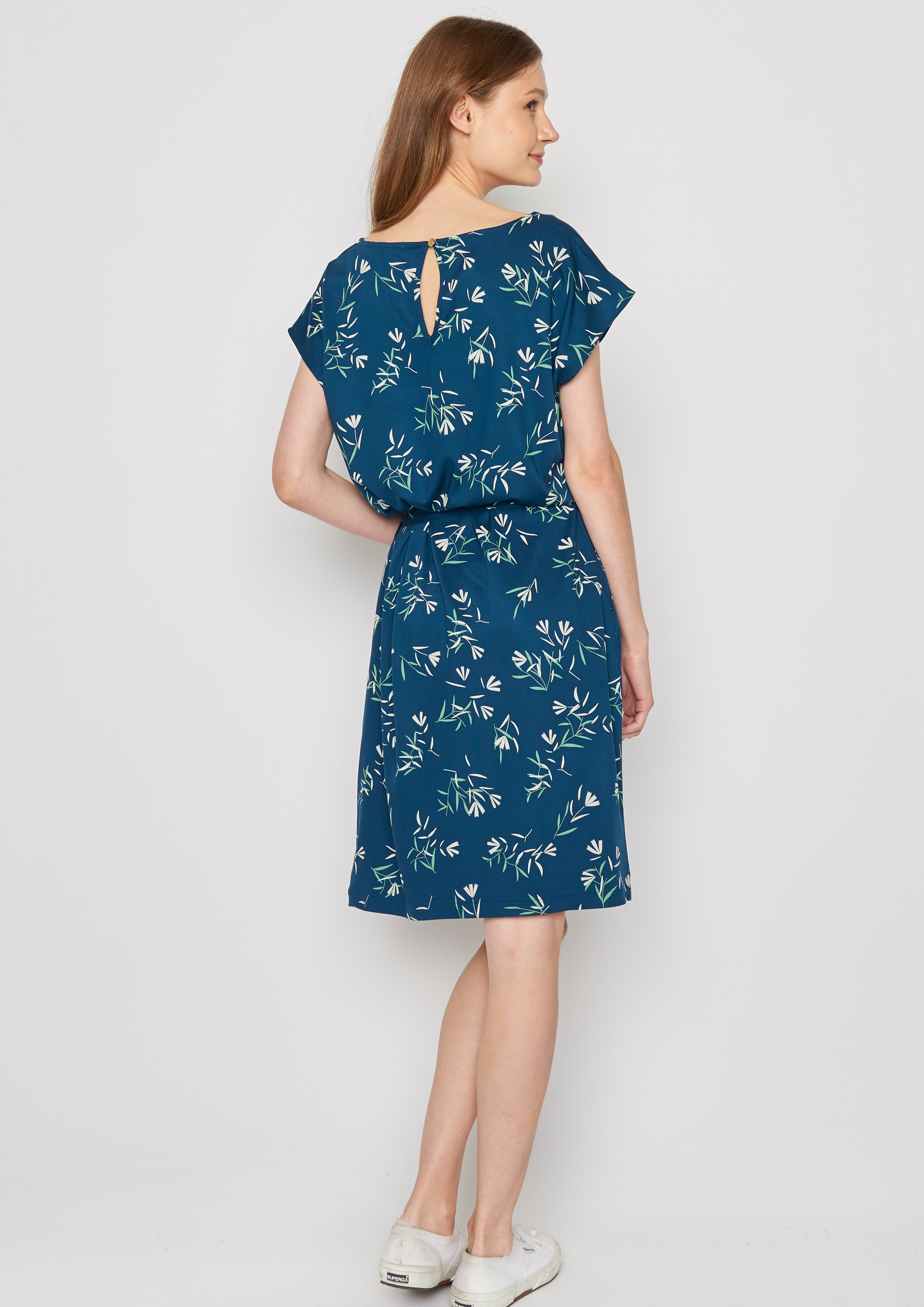 Durch den leichten Viskosestoff ist das Kleid von Greenbomb sehr angenehm zu tragen und ein perfekter Begleiter für warme Sommertage. Das Kleid hat einen Gürtel, welcher die Taille betont und zwei Eingriffstaschen an den Seiten.