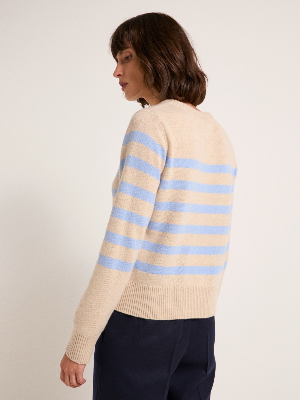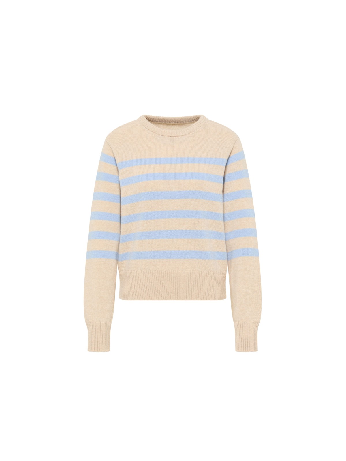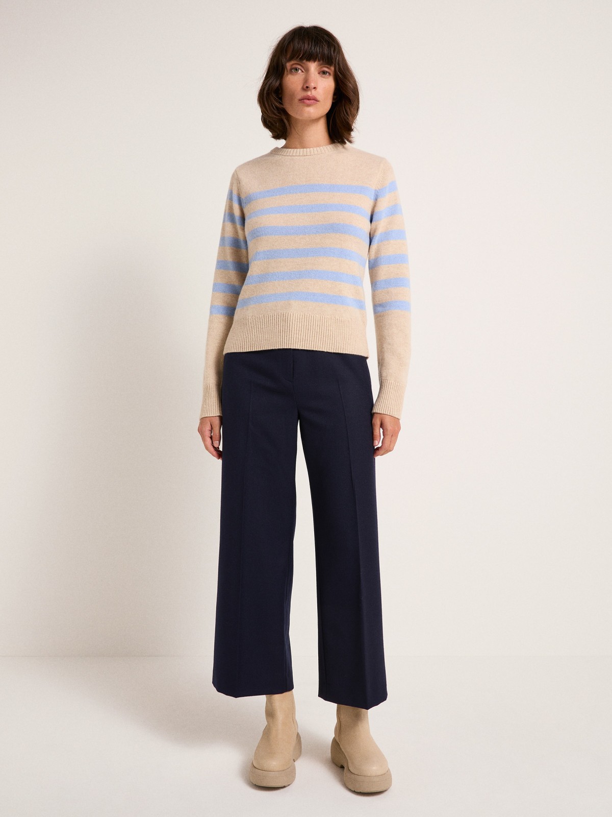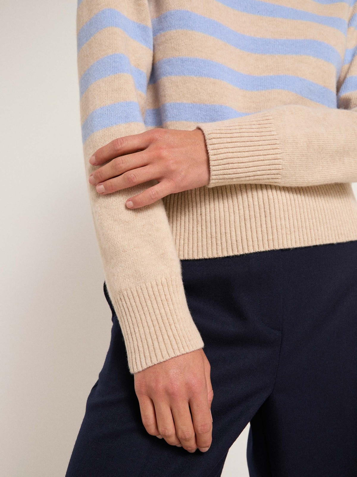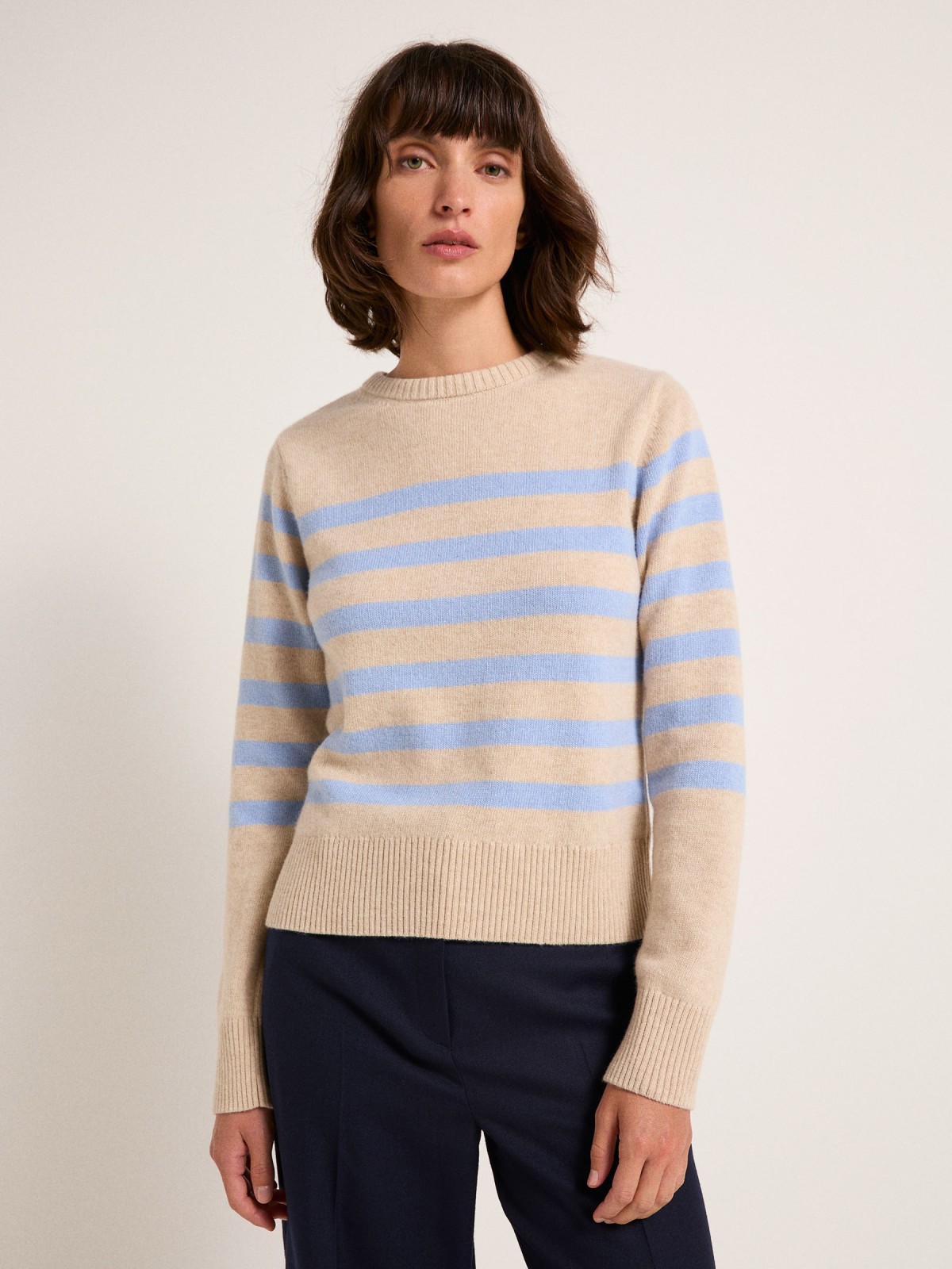 Pullover mit Streifen, Rundhalsausschnitt und Kontraststreifen. Der edle Materialmix aus Schurwolle und Kaschmir bietet ein luxuriöses Tragegefühl. Die breiten Bündchen am Arm sind ein klassisches Detail.