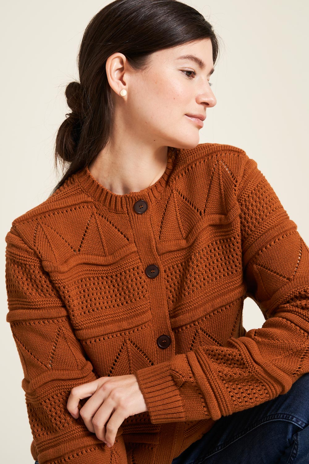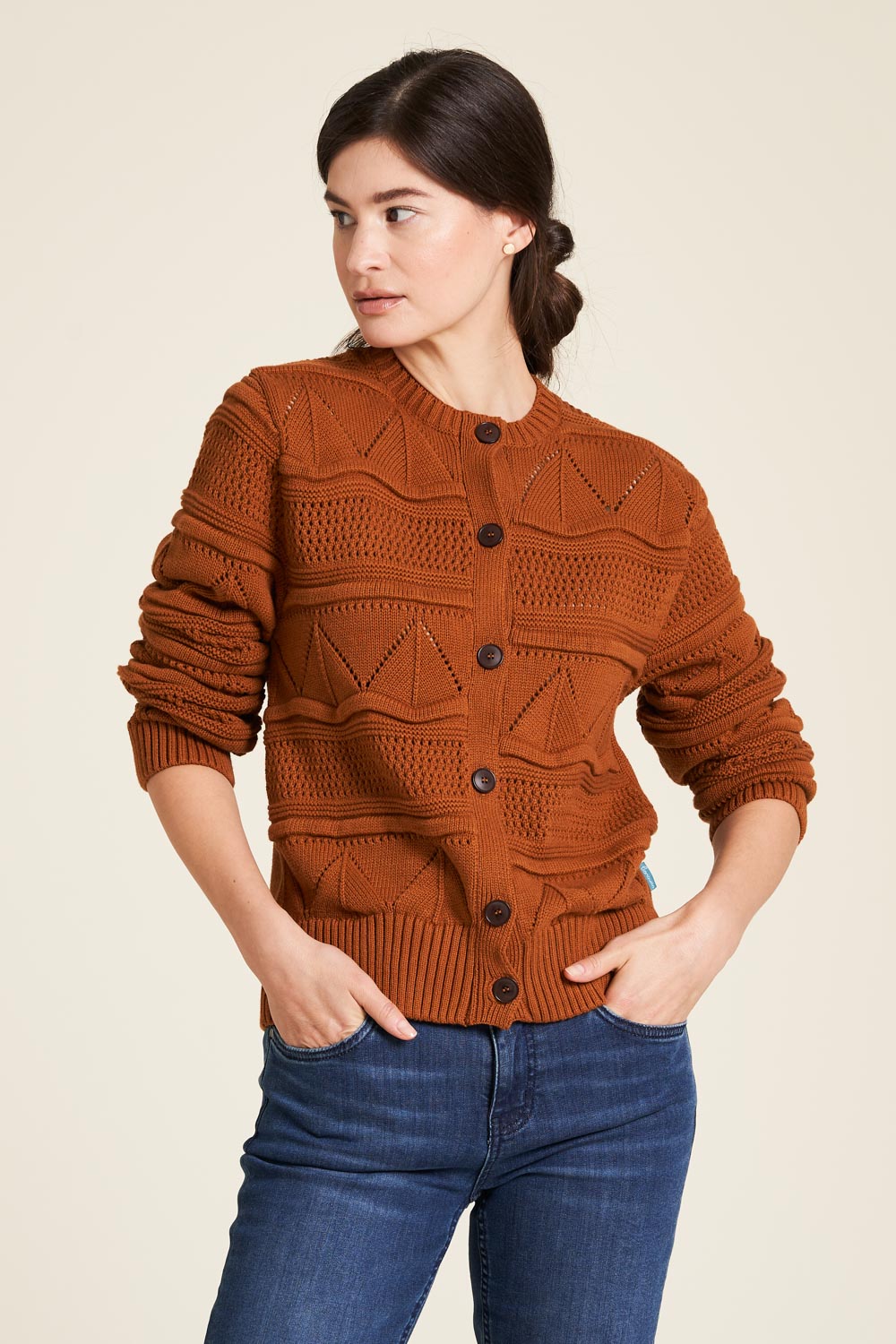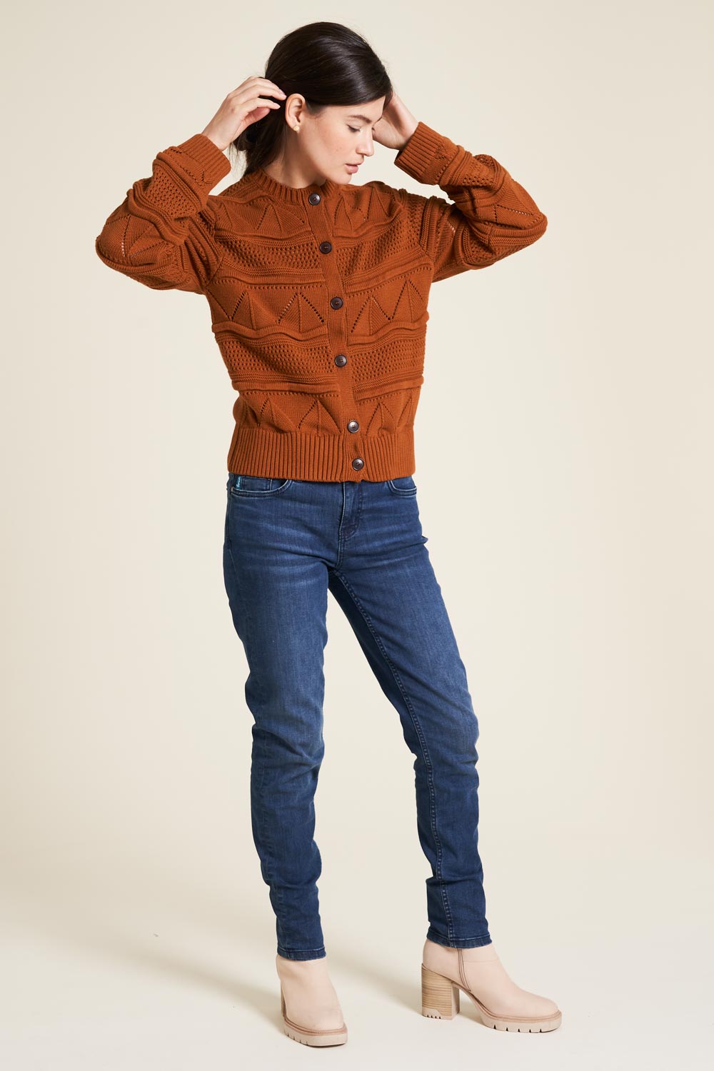 Perfekt für die kälteren Tagen bist du mit dieser kuscheligen Strickjacke wärmstens gekleidet. Die Jacke ist tailliert geschnitten und hat abgesetzte Bündchen.