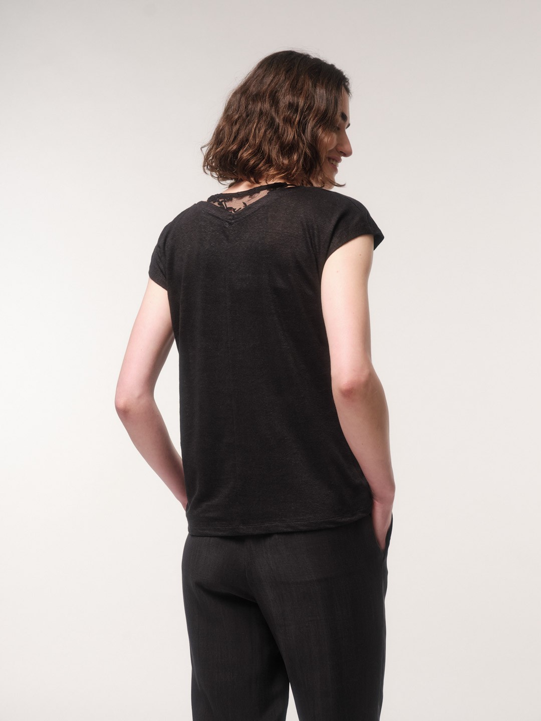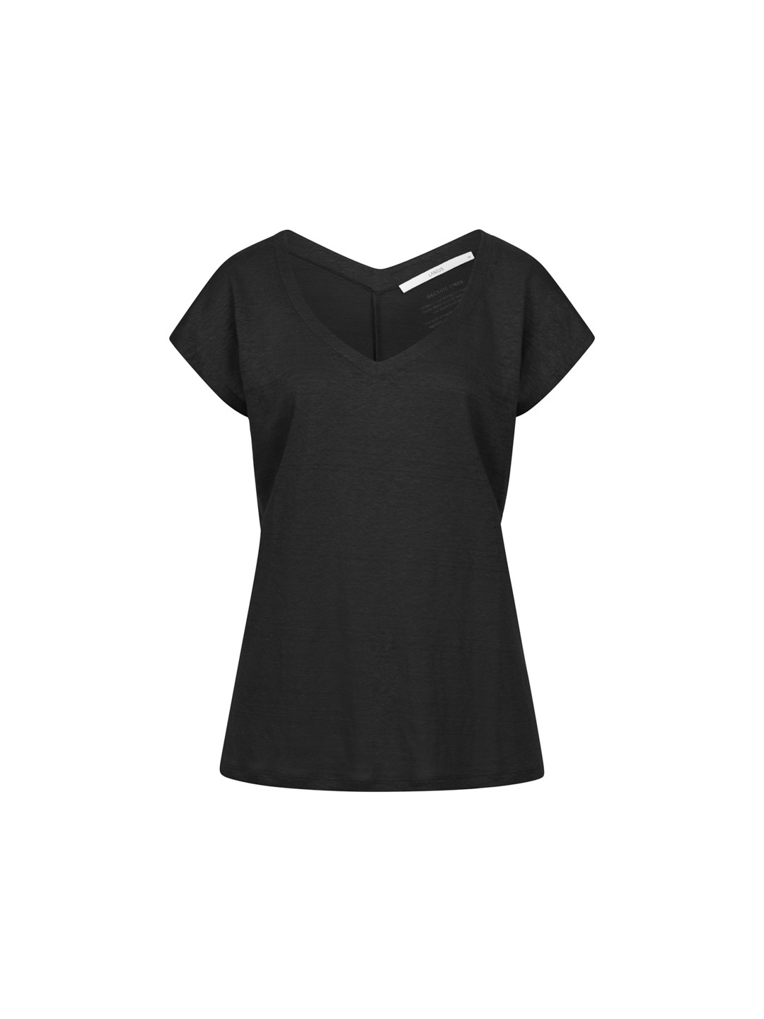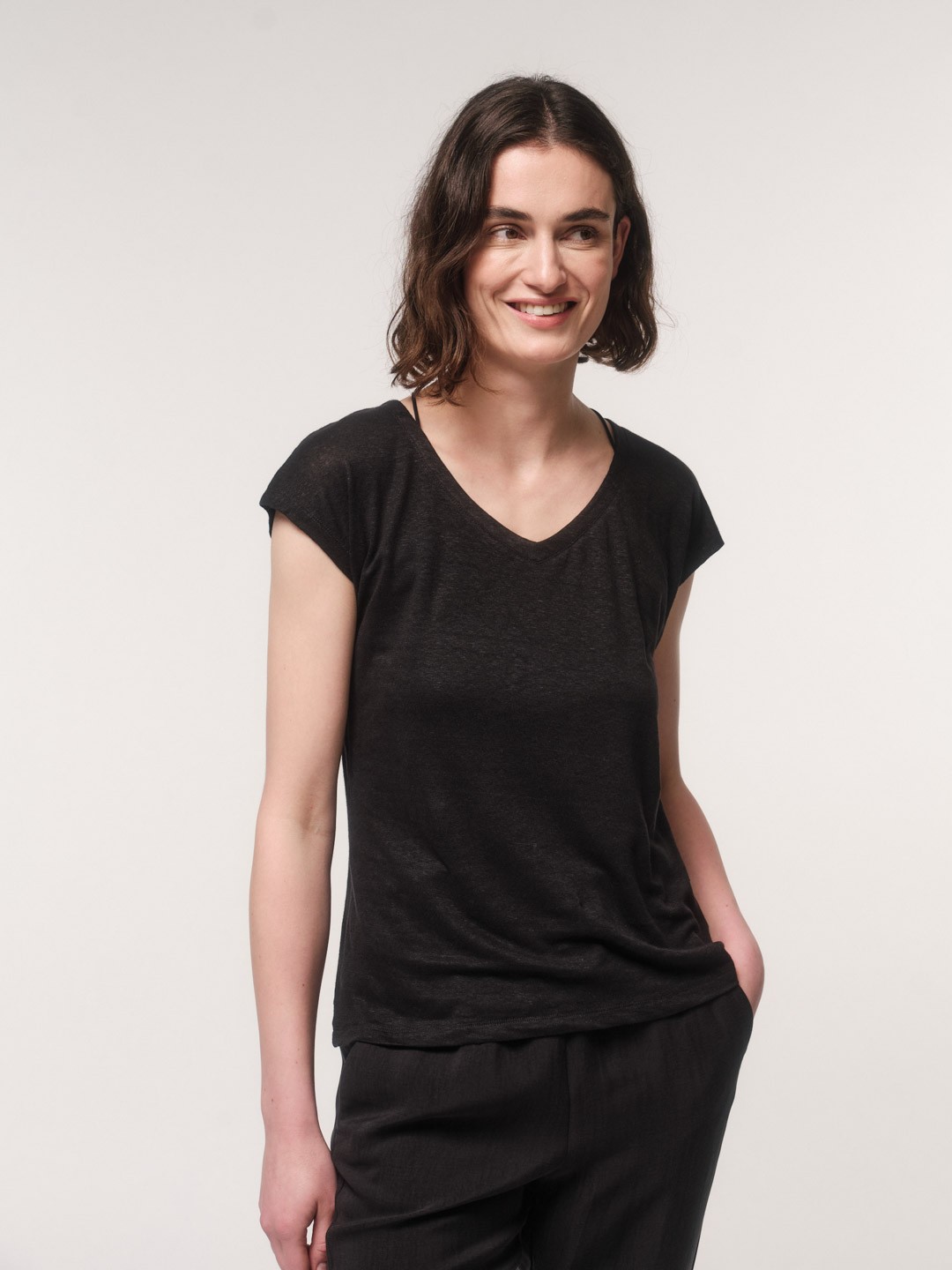 Angenehm fließendes Shirt mit vorne weitem und hinten kleinem V-Ausschnitt, angeschnittenen Ärmeln und leicht taillierter Passform. Bio-Leinen ist robust und hautfreundlich sowie temperaturausgleichend und daher bestens als Material für sommerliche Shirts geeignet.