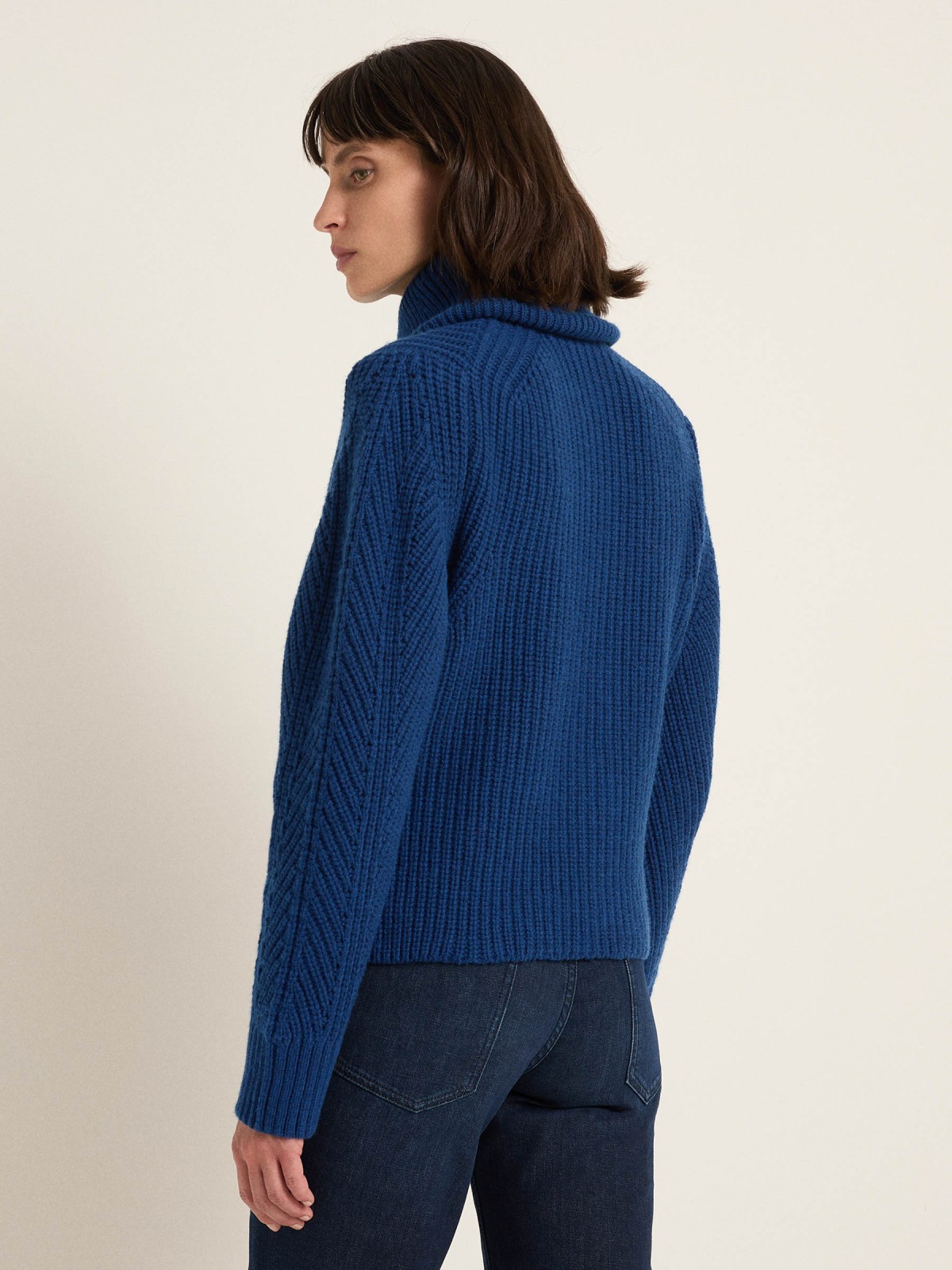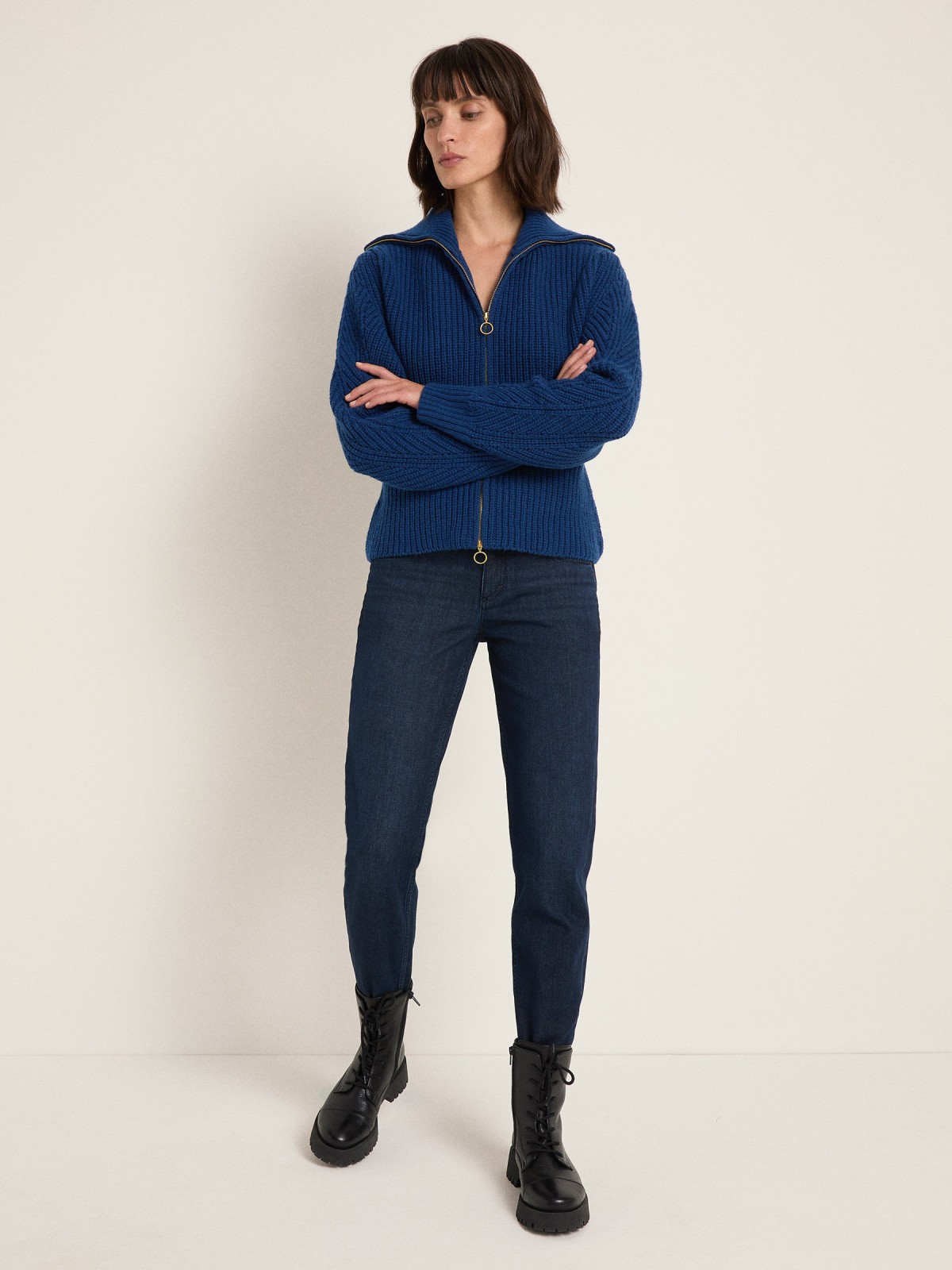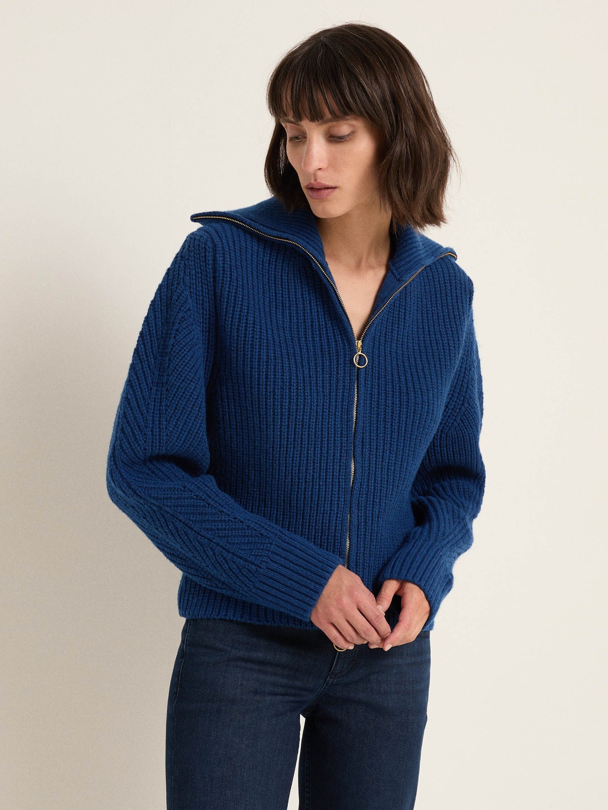Oversized geschnitten, mit hohem Kragen und Reißverschluss lässt sich der Strickcardigan vielfältig tragen und kombinieren. Wenn Sie es nicht allzu locker mögen, empfehlen wir eine Größe kleiner zu wählen.