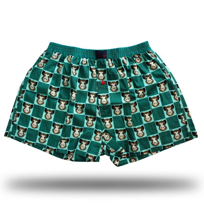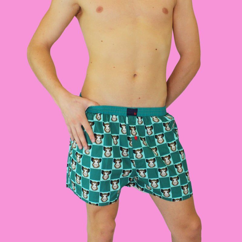 Oink, Oink – was für eine eberstarke Boxershorts. Geile Keiler rüsseln ihre Steckdosennasen auf waidmannsgrünem Hintergrund und am Bund hat diese Unabux Boxershorts eine orangefarbene Naht, damit du bei der nächsten Treibjagd nicht übersehen wirst. Egal, was du trägst: Mit dieser Boxershorts bleibst du untenrum wild!